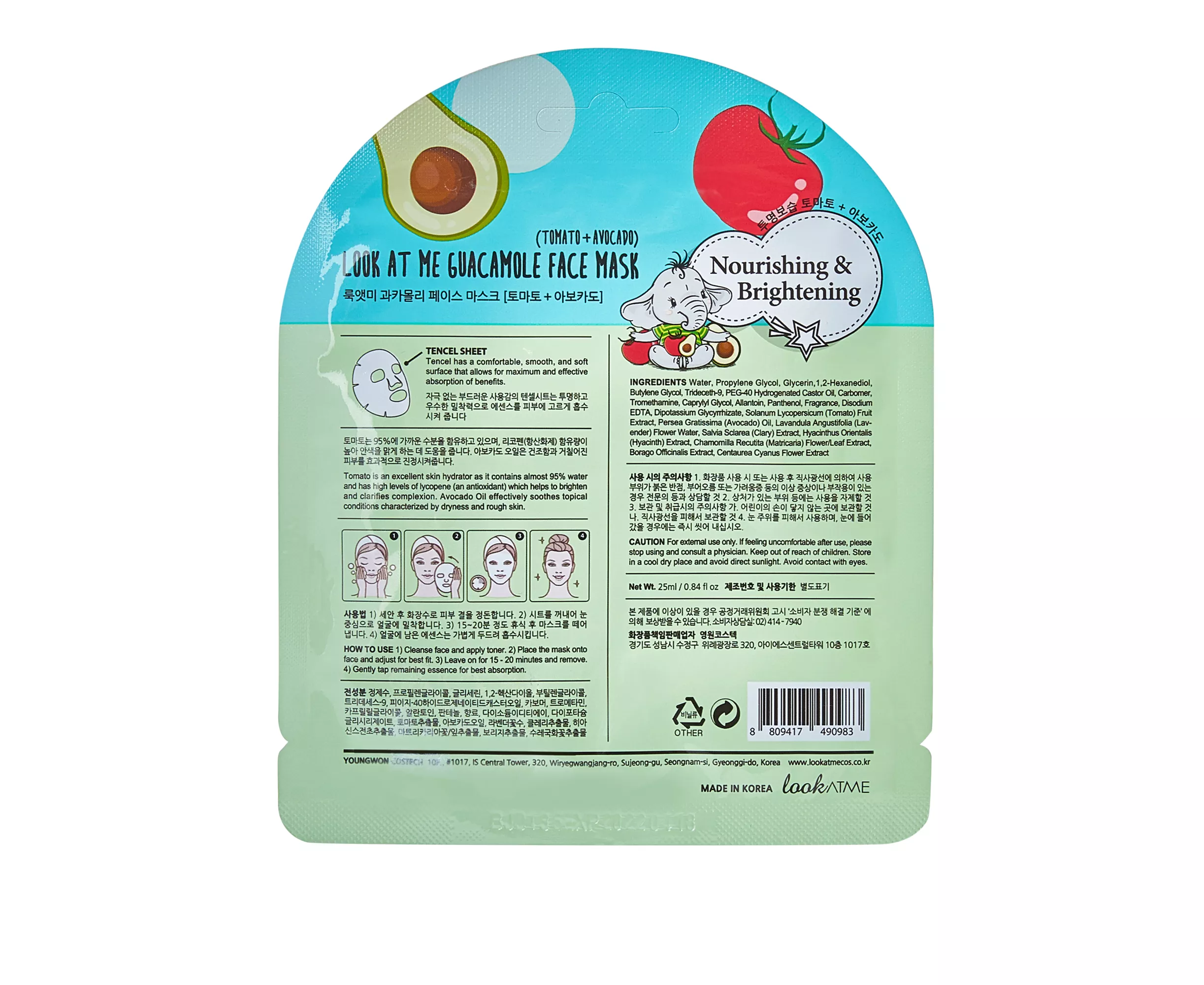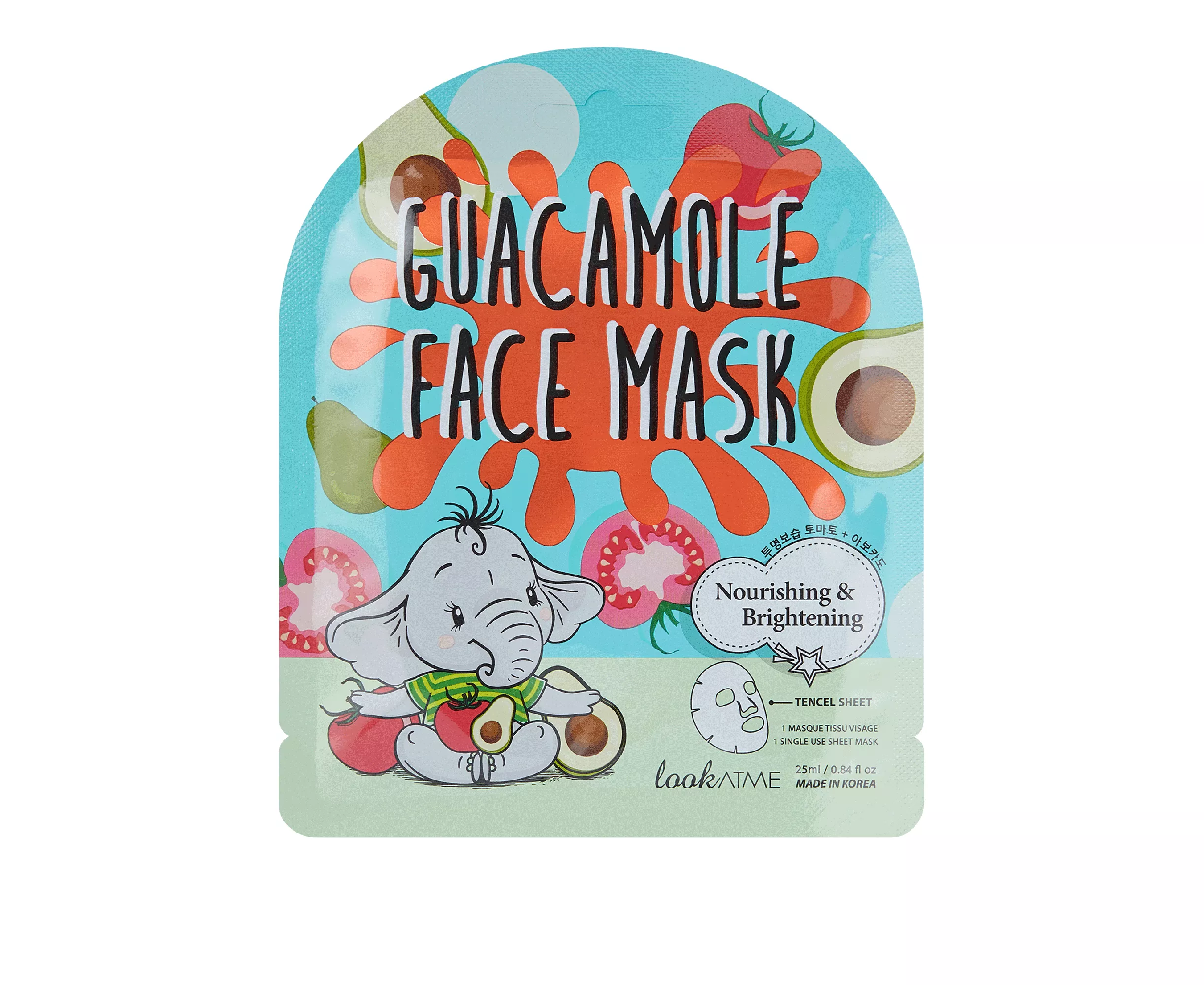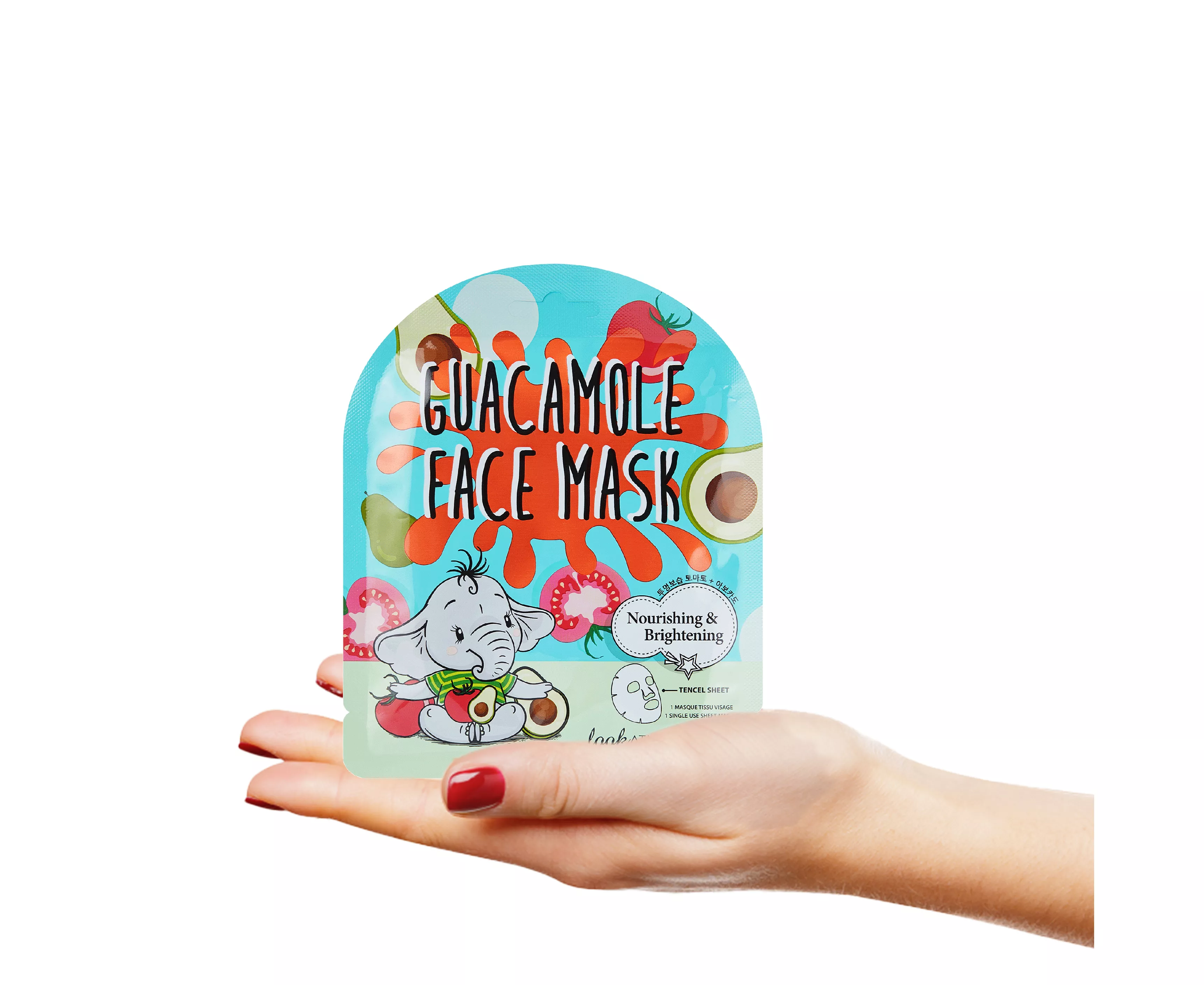 Tencel facial mask formulated with tomato, a powerful ingredient that contains 95% water and high levels of antioxidants that helps equalize skin tone, while avocado softens and deeply nourishes it. This adorable mask has antioxidant and moisturizing properties thanks to the fusion of its main ingredients, tomato and avocado.