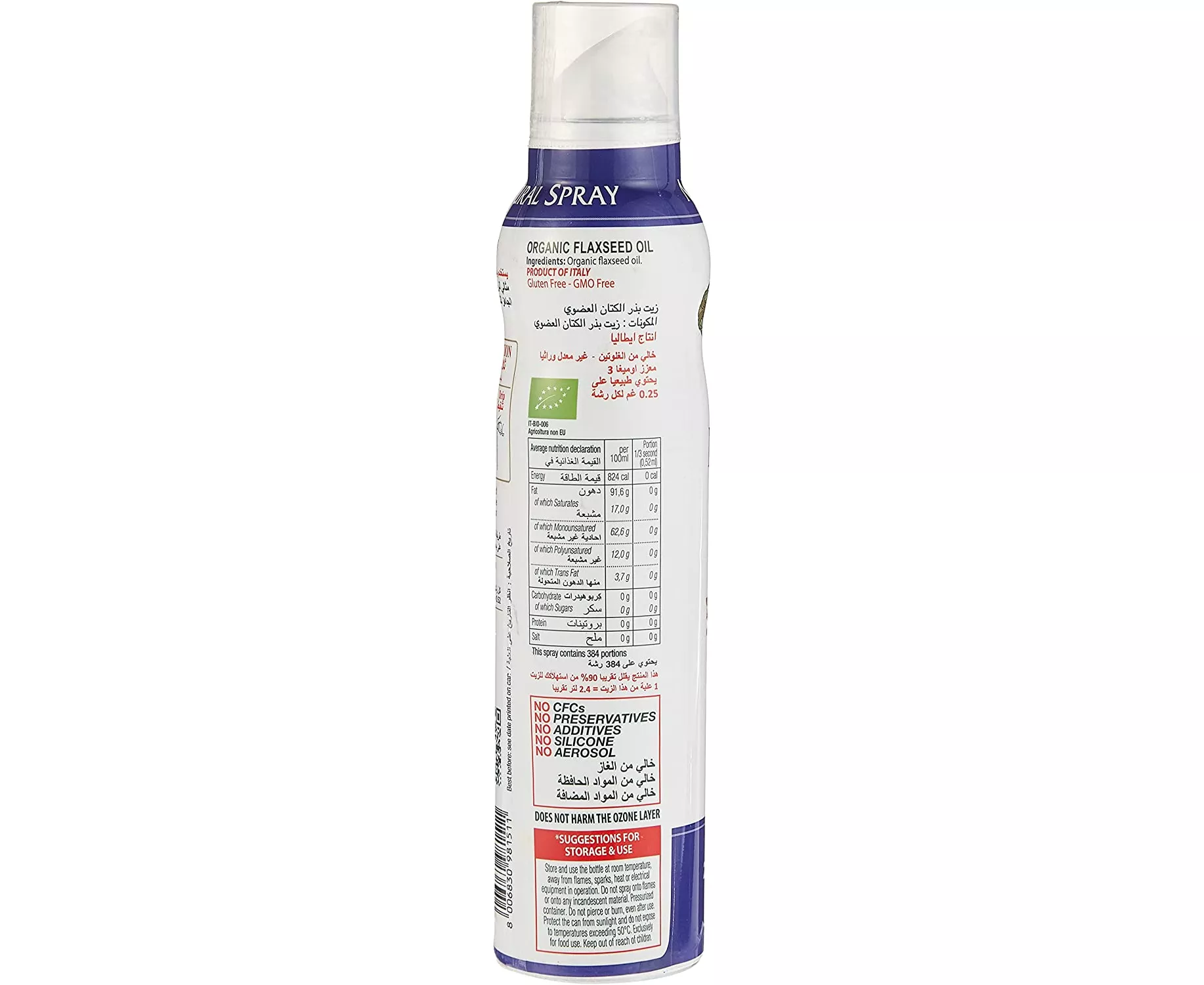 Flaxseed Oil, also known as Linseed Oil, is a lightly colored oil with high levels of healthy omega-3 fatty acids and ALAs which support healthy brain health and have anti-inflammatory benefits. Flaxseed Oil imparts a mild, nutty flavor to dishes. Mantova' s unique bag-in-valve technology eliminates the need for chemical propellants and other harmful ingredients. This product doesn’t contain CFCs or preservatives. Flaxseed oil is naturally gluten-free and does not contain cholesterol or trans fats.