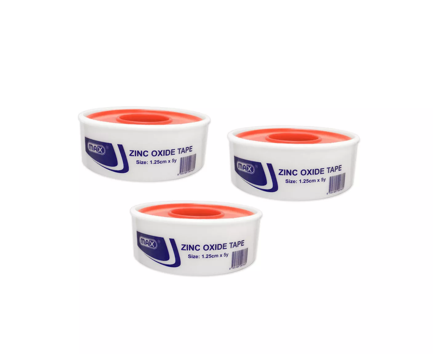 Max Zinc Oxide Tape 1.25cmx5y 3 Pcs