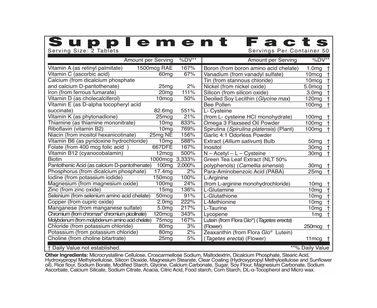 The formula with 50 ingredients is the absolute ultimate scientifically advanced multi-vitamin, mineral & antioxidant phytonutrient formula.