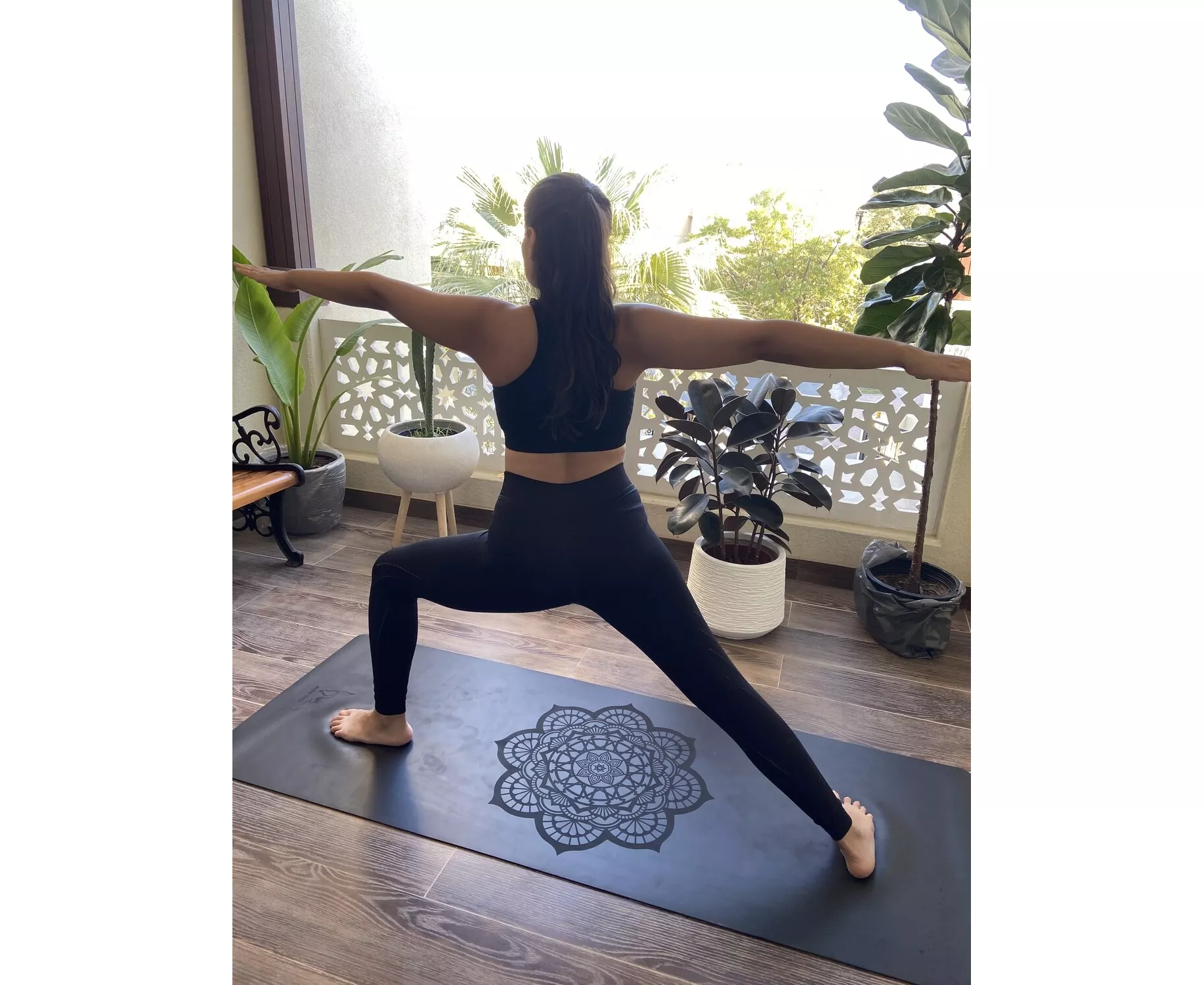 The Black Mandala Yoga Mat. Inspired by the sun and the moon, this mandala was created with the words unity, transformation, strength and spiritual energy in mind