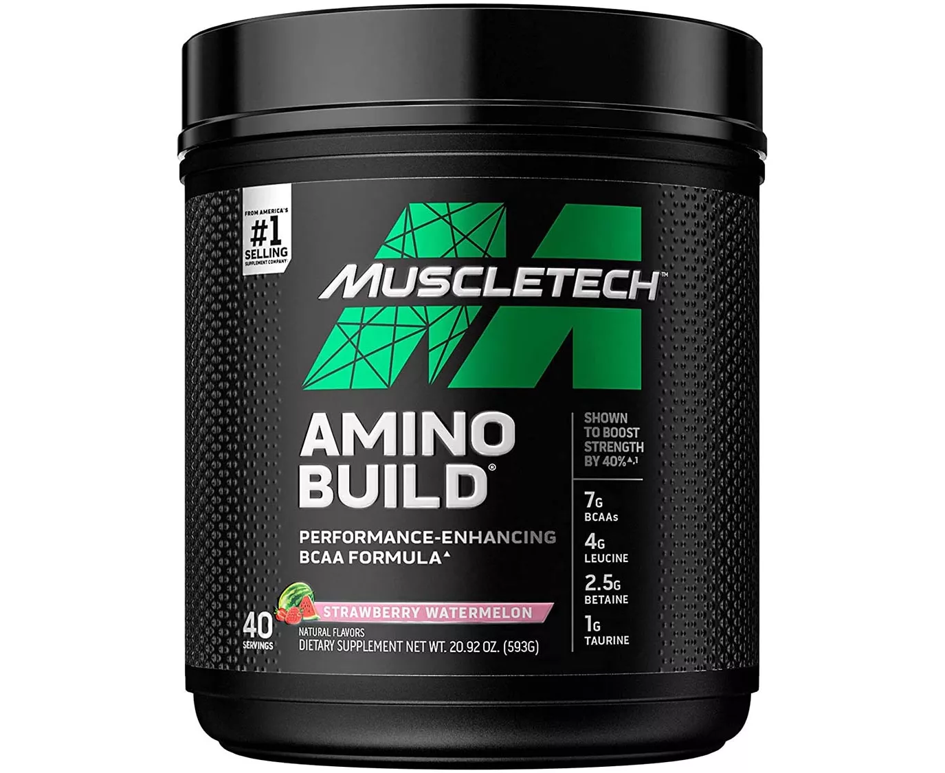 MuscleTech Amino Build is a scientifically dosed superior muscle and amino acid formula and performance enhancer designed to provide your body with the BCAAs you need to boost your strength and support recovery. This advanced formula can be taken before, during, or after training and will help build more muscle than regular amino formulas. Contains a scientifically proven dose of betaine to support muscular endurance and lean muscle. Subjects used an exact dose of betaine compared to 0.66 lbs. By the placebo group. Build 3.75 lbs. Leucine Muscle in 6 Weeks More Muscle & Strength Better Results for You Up to 40% Strength AminoBuild contains the same 4g dose of Leucine shown in a research study (conducted at a leading international university) to help people increase their maximum strength of 5 reps by 40% to improve endurance performance. Supplying your muscles with the energy they need