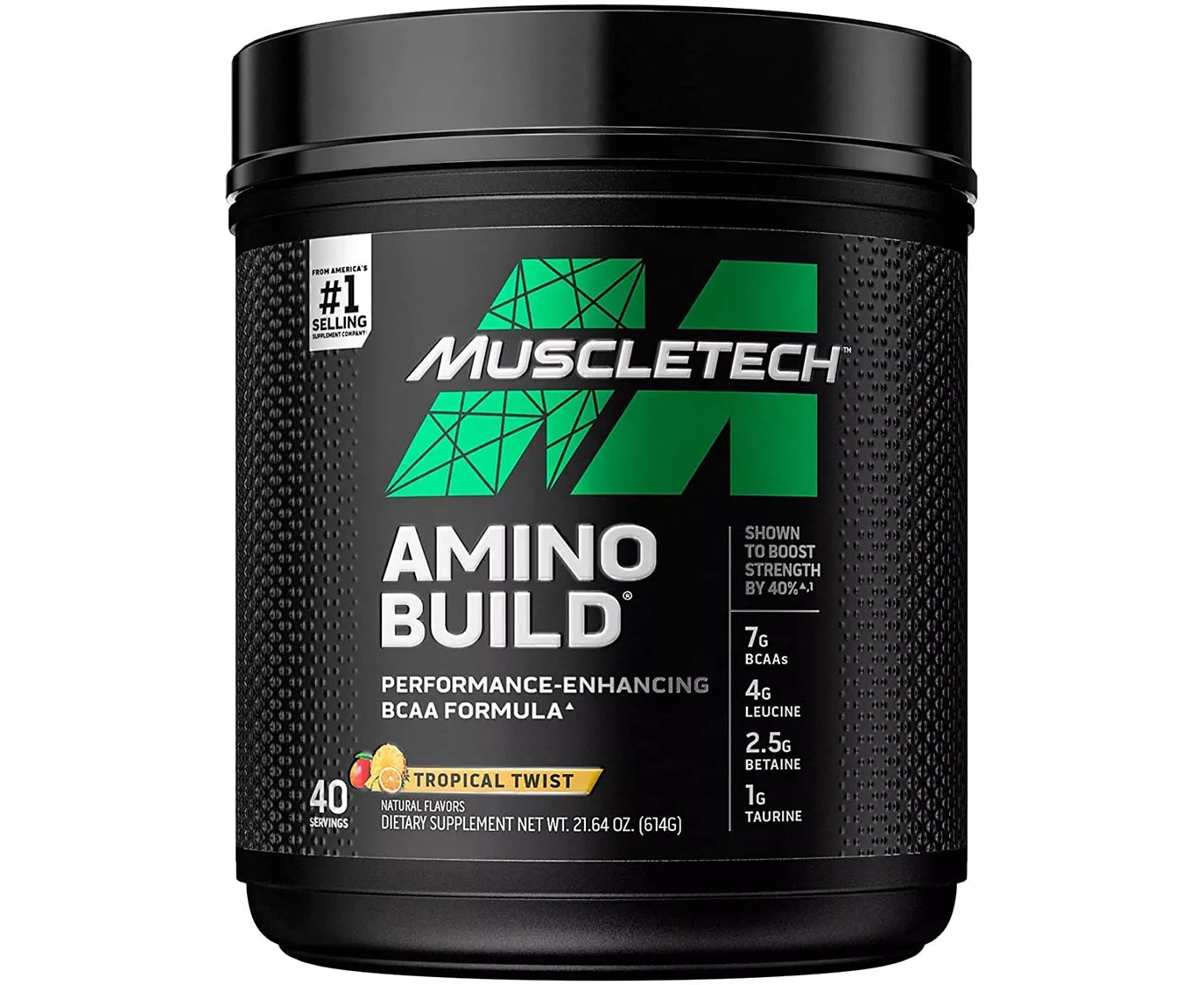 MuscleTech Amino Build is a scientifically dosed superior muscle and amino acid formula and performance enhancer designed to provide your body with the BCAAs you need to boost your strength and support recovery. This advanced formula can be taken before, during, or after training and will help build more muscle than regular amino formulas. Contains a scientifically proven dose of betaine to support muscular endurance and lean muscle. Subjects used an exact dose of betaine compared to 0.66 lbs. By the placebo group. Build 3.75 lbs. Leucine Muscle in 6 Weeks More Muscle & Strength Better Results for You Up to 40% Strength AminoBuild contains the same 4g dose of Leucine shown in a research study (conducted at a leading international university) to help people increase their maximum strength of 5 reps by 40% to improve endurance performance. Supplying your muscles with the energy they need