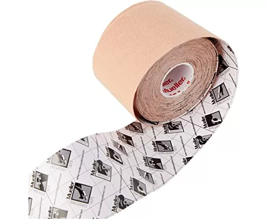 Mueller Kinesiology Tape Mueller Kinesiology tape can benefit a wide variety of inflammatory conditions, musculoskeletal and sports injuries. The wave-patterned adhesive design of Kinesiology Tape allows it to have the same flexibility as human muscles, so it offers a gentle yet effective way to re-educate the neuromuscular system, improve blood circulation, and relieve pain by providing comfort and stability to your body. Kinesiology Tape provides excellent air permeability to let your skin breathe while letting sweat evaporate. It is also water resistant, so it securely adheres to your skin and will stick through showers and water activities (including salt water), making it the perfect aid for all athletes including water sports enthusiasts and triathletes. Mueller Kinesiology Tape is one of the thinnest and lightest kinesiology tapes on the market. It is not pre-cut which means that you can cut it to desired lengths without waste; it also gives you flexibility to use longer strips for maximum effectiveness for areas like the hip flexor. Moreover, it is the only tape that survives extreme workouts, such as hours of open-water swimming, surfing, and triathlons. How does Mueller Kinesiology Tape actually work? Fatigued or injured muscles are usually inflamed, which causes muscle fibers to push up against the skin and block the blood circulating between the upper muscle and skin layer, leading to pain. After stretching the tape and applying it, the tape will want to contract so it lifts up the skin with it creating space for more blood to flow through. New blood supplies more oxygen to help combat fatigue whilst providing pain relief to soreness, cramps, sprains and other injuries. How to Apply Muscle Aid : Round the edges of the tape after cutting to stop the tape snagging against clothing. Apply to clean, dry skin. (Be aware taping to hair, will reduce the adhesivitity. It is recommended to trim areas of body with longer hair - legs/ chest for men.