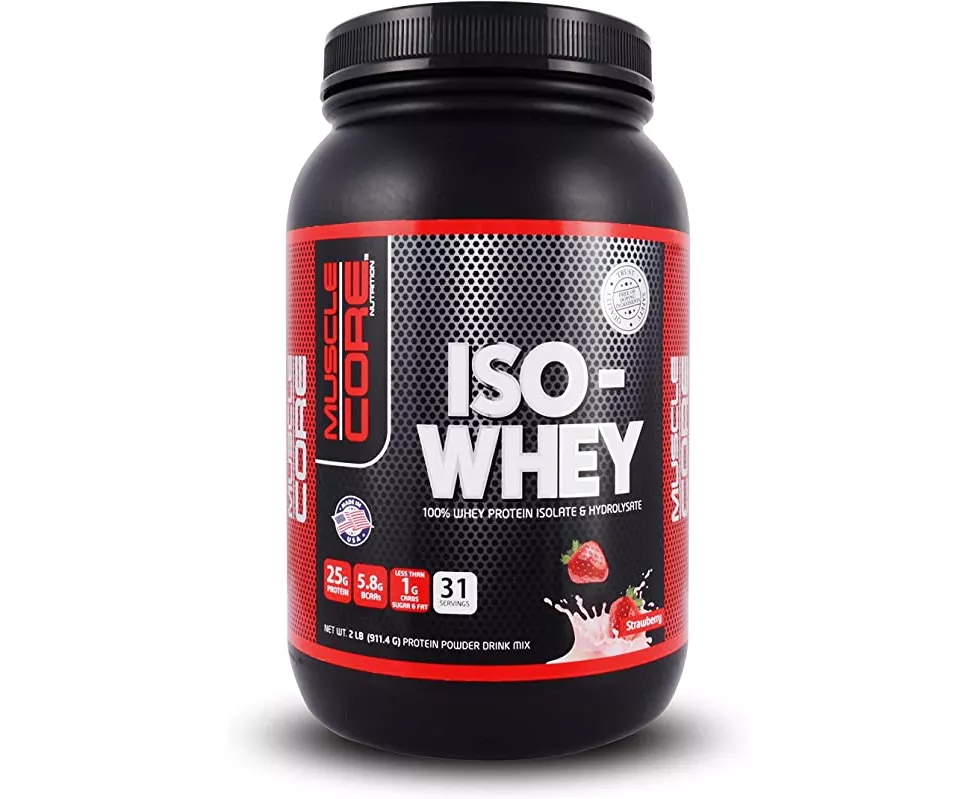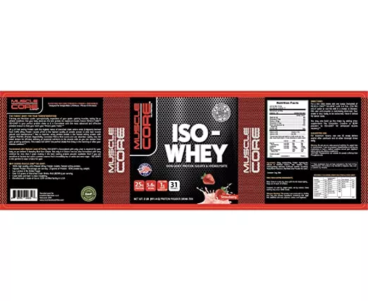 Why Choose muscle core ISO-WHEY. 100% good-quality ultra-filtered Whey Protein Isolate - fastest acting protein. good protein percentage per serving: 25 grams of protein - 85% protein by weight. Low lactose and no added sugar. Over 5. 8 grams of Branched Chain Amino Acid (BCAA's) per serving. Great taste and best in class mixability. Manufactured in state-of-the-art GMP certified facility in the U. S. A. THE PUREST WHEY FOR YOUR TRANSFORMATION. Training and nutrition work synergistically regardless of your goals - gaining muscles, losing fat or athletic condition. And your body deserves the best protein for maximum results. Hence Muscle Core ISO-WHEY is your perfect protein shake as it is formulated with the most advanced and effective proteins known to help you reach your fitness goals faster. 25g of fast-acting protein with the good value of branched-chain amino acids (5. 8 grams) derived from 100% Whey Protein Isolate which is the good quality of protein proven to aid lean muscle growth and maintenance. Not to mention, whey protein isolate is the fastest acting protein with good PDCAAs (Protein Digestibility Corrected Amino Acid score) and are absorbed rapidly into the bloodstream for efficient delivery of essential nutrients to the muscle cells so you can recover from your grueling workouts. This makes ISO-WHEY the perfect shake first thing in the morning or after your intense workout. Formulated with the good level of purity, ISO-WHEY is formulated with only what is required for your body as we believe in keeping nutrition simple. Not only is it gluten-free but also formulated with very minimal fat, less than 1 gram making it the best tasting protein powder available. And if you are sensitive to lactose but want a protein source that's incredibly low in carbs and zero-sugar, ISO-WHEY is the perfect and smart choice for you.