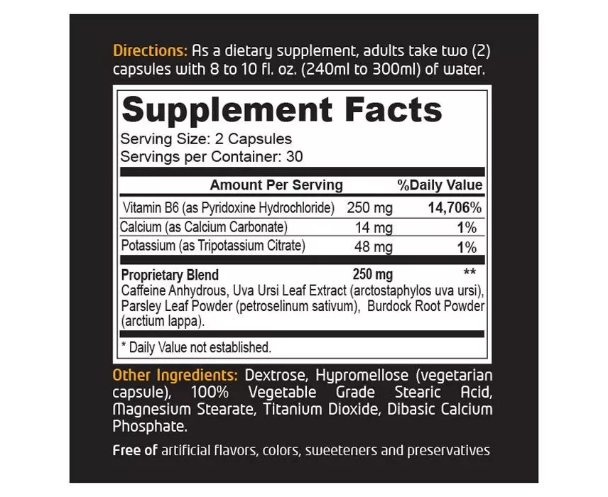 Muscle core water pill contains a specific blend that includes active ingredients: uva ursi, parsley, and burdock that are rich in antioxidants and supports healthy urinary tract infection.