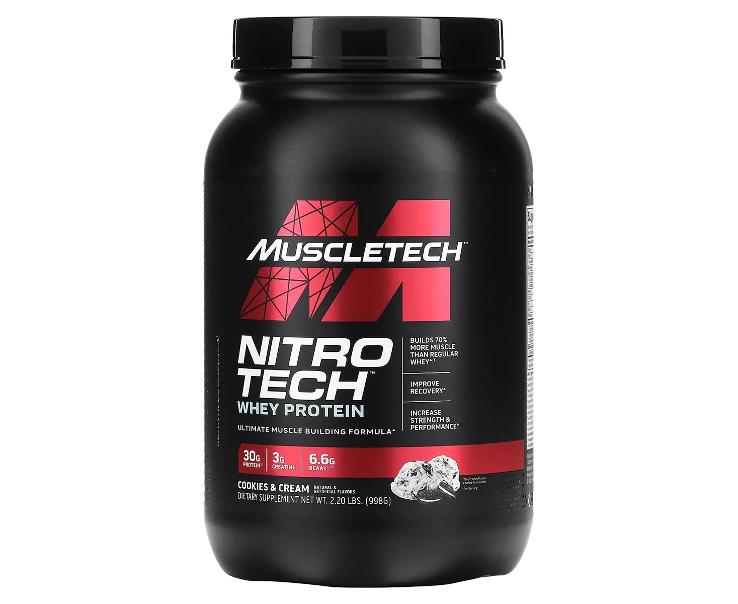 Muscletech Nitro-Tech Performance Series is a bodybuilding supplement formulated with both domestic and international ingredients. The most powerful protein complex ever developed with Whey Isolate and Whey Peptides Designed to Build Lean Muscle Designed for Athletes for More Muscle, Strength, and Better Performance. Most pure protein sources are available to athletes, as 1 scoop of Nitro-Tech contains 30g of protein, only 4g of carbohydrates, and 2.5g of fat.