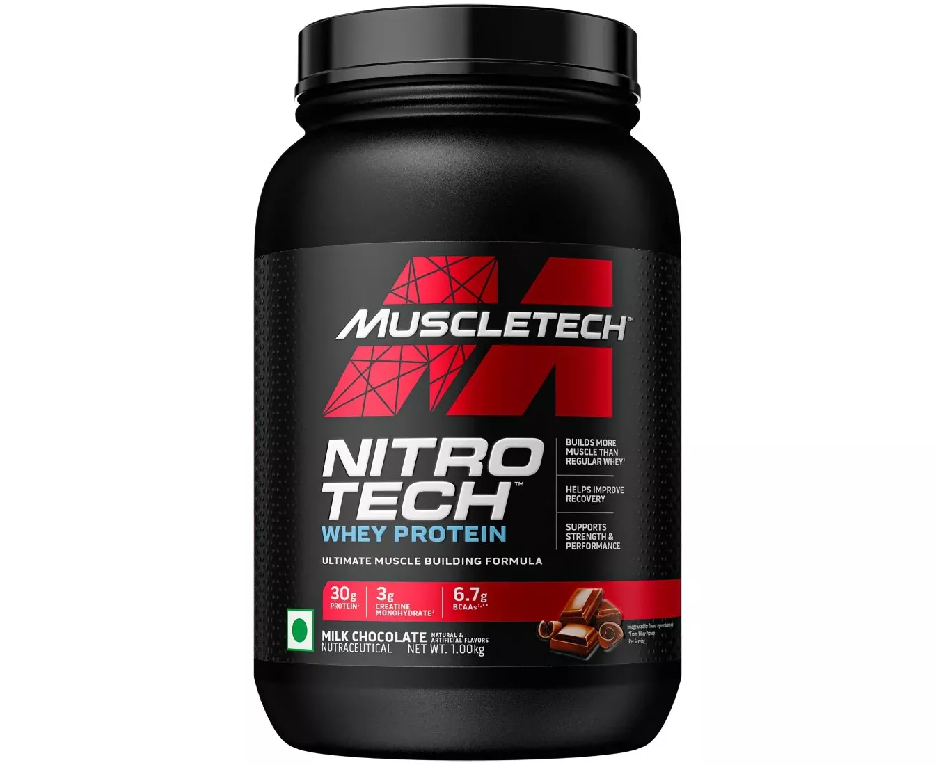 The MuscleTech Nitrotech Performance Series is a premium quality supplement that is great for strong muscle development. It contains 1g of carbohydrate, 1g of sugar and 1.5g of total fat per serving. This supplement is enriched with amino acids and creatine too. Thus, the three major benefits of consuming the MuscleTech Nitrotech Performance Series are: