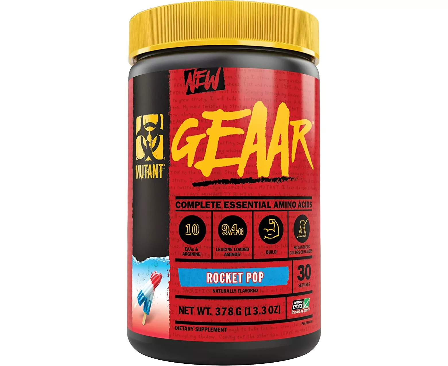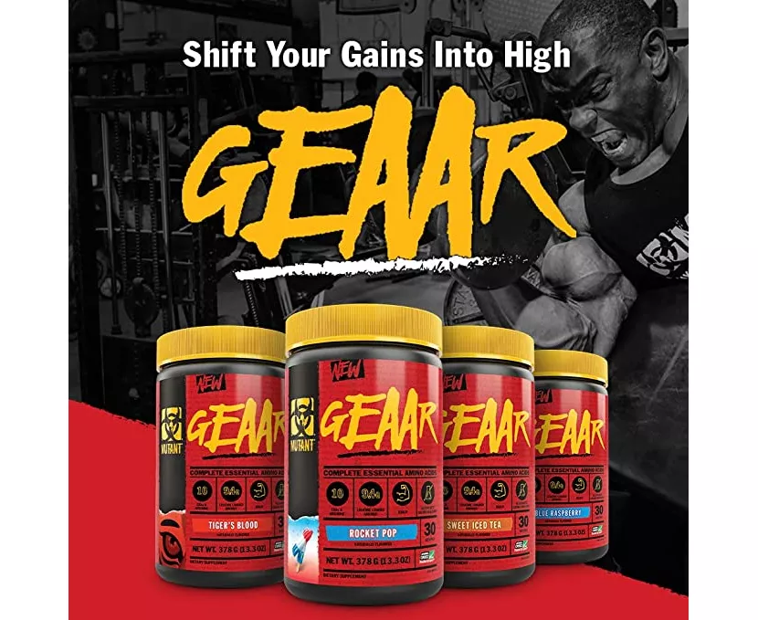 Mutant Geaar– THE COMPLETE EAA. Support your muscle growth and recovery with GEAAR, the most complete EAA supplement commercially available GEAAR was formulated with 9.4 grams of EAAs plus Arginine, 7 grams of BCAAs and 4 grams of Leucine. GEAAR is also stacked with natural electrolytes to maximize performance with no artificial flavors, colors or dyes GEAAR is made from vegan fermented amino acids and uses only natural colors and flavors to create our freak’n delicious taste! As an added commitment to our quality control, MUTANT has formed a strategic alliance with Informed-Choice to independently lab test our products for banned substances This product brand is INFORMED-CHOICE tested by the anti-doping lab LGC as of 2020 (ISO 17025 same standard as IOC/WADA labs) informed-choice. This product brand is INFORMED-CHOICE tested by the anti-doping lab LGC (ISO 17025 – same standard as IOC/WADA labs). See informed-choice.org.