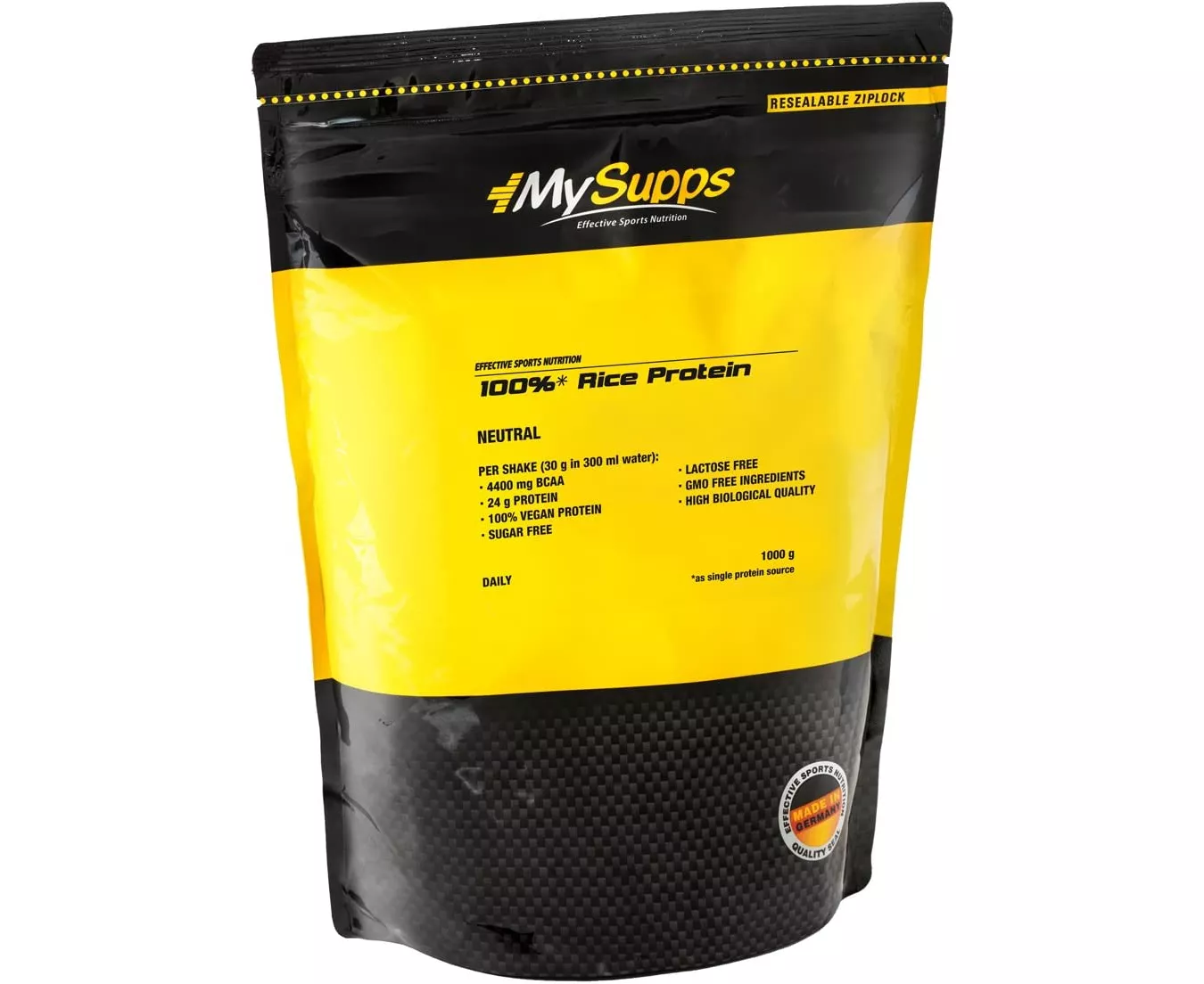 • Optimal supply: MySupps 100% rice protein provides your body with proteins, with 23 g per 30 g powder. In addition, our product contains 4200 mg BCAA per 30 g. We support you in your intensive and successful workout.