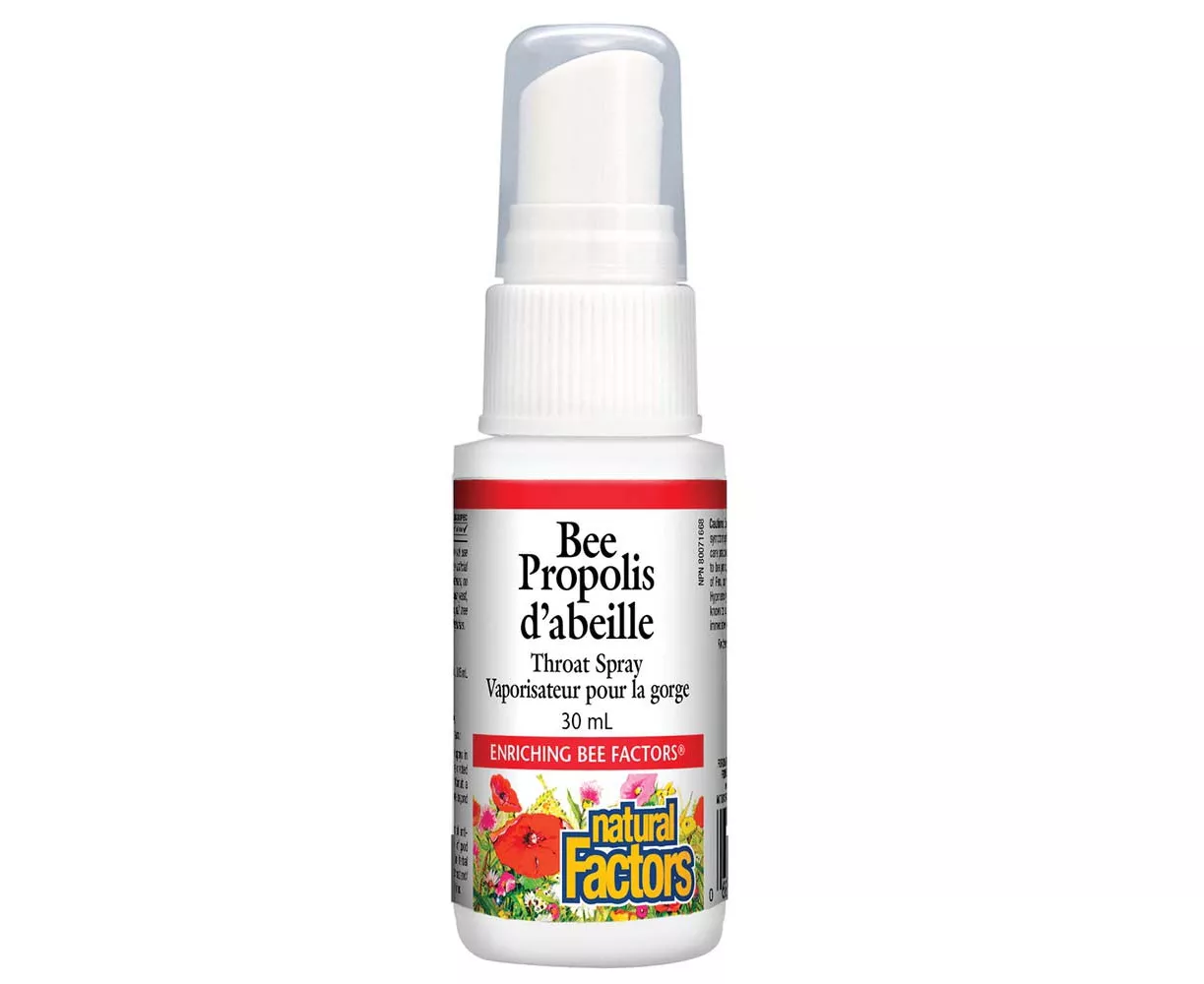 Natural Factors Bee Propolis Throat Spray is a unique substance made by bees from the sap of trees. Bees use propolis to sterilize and seal hives against invading microbes and bacteria. Propolis is a source of antioxidants and has long been used on abscesses and wounds to help fight infection.