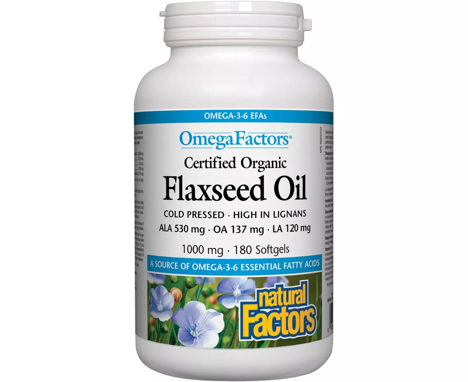 زيت بذور الكتان عضوي موثق من ناتشورال فاكتورز 1000 مج - 180 سوفت جل