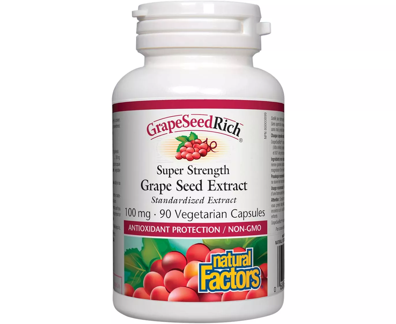 Natural Factors Grape Seed Extract is a non-GMO food supplement that contains 95% polyphenols and 80% proanthocyanidins, so it is a rich source of pure antioxidants that protect the body from various free radicals, help support night vision and strengthen blood vessels.