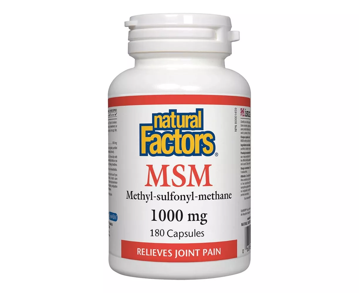 MSM naturally relieves joint pain by helping the body create healthy connective tissue in joints and muscles. It is also used to make collagen needed for healthy skin, hair, and nails. Natural Factors MSM can help improve the comfort and mobility of people with osteoporosis.
