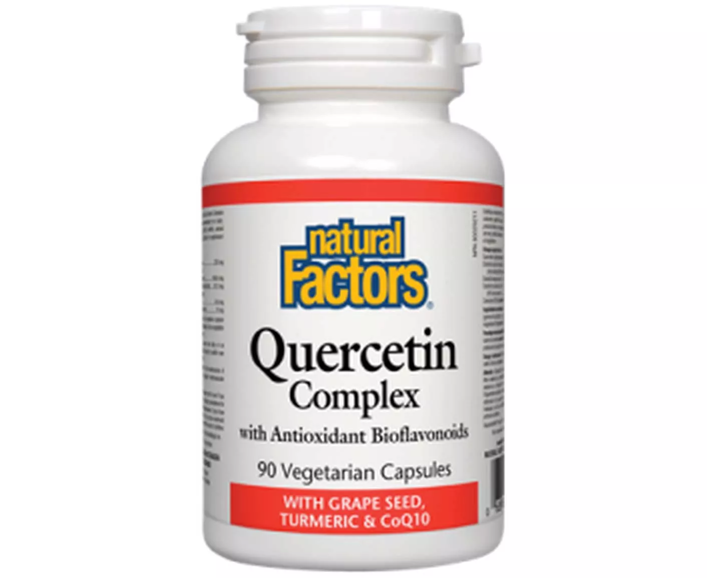 Natural Factors Quercetin Complex is an antioxidant formula especially developed to help maintain optimal health and prevent accelerated aging by reducing free radical formation. It supports cardiovascular and circulatory health, is used for immune health, and may help calm allergy symptoms. Quercetin Complex is considered safe and suitable for long-term use by adults.