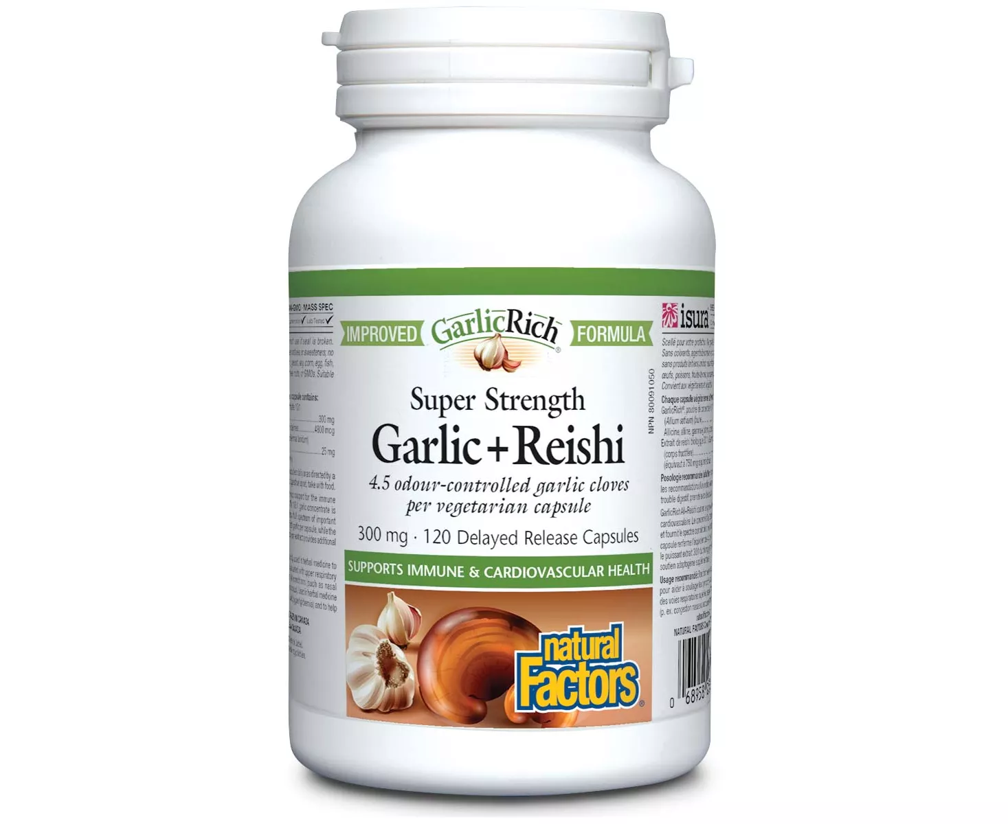 supports the immune system and helps maintain cardiovascular health courtesy of a 10:1 garlic concentrate and 30:1 organic reishi mushroom extract for adaptogenic support. Each capsule provides the full spectrum of active garlic compounds in a delayed-release format to help reduce garlic breath.