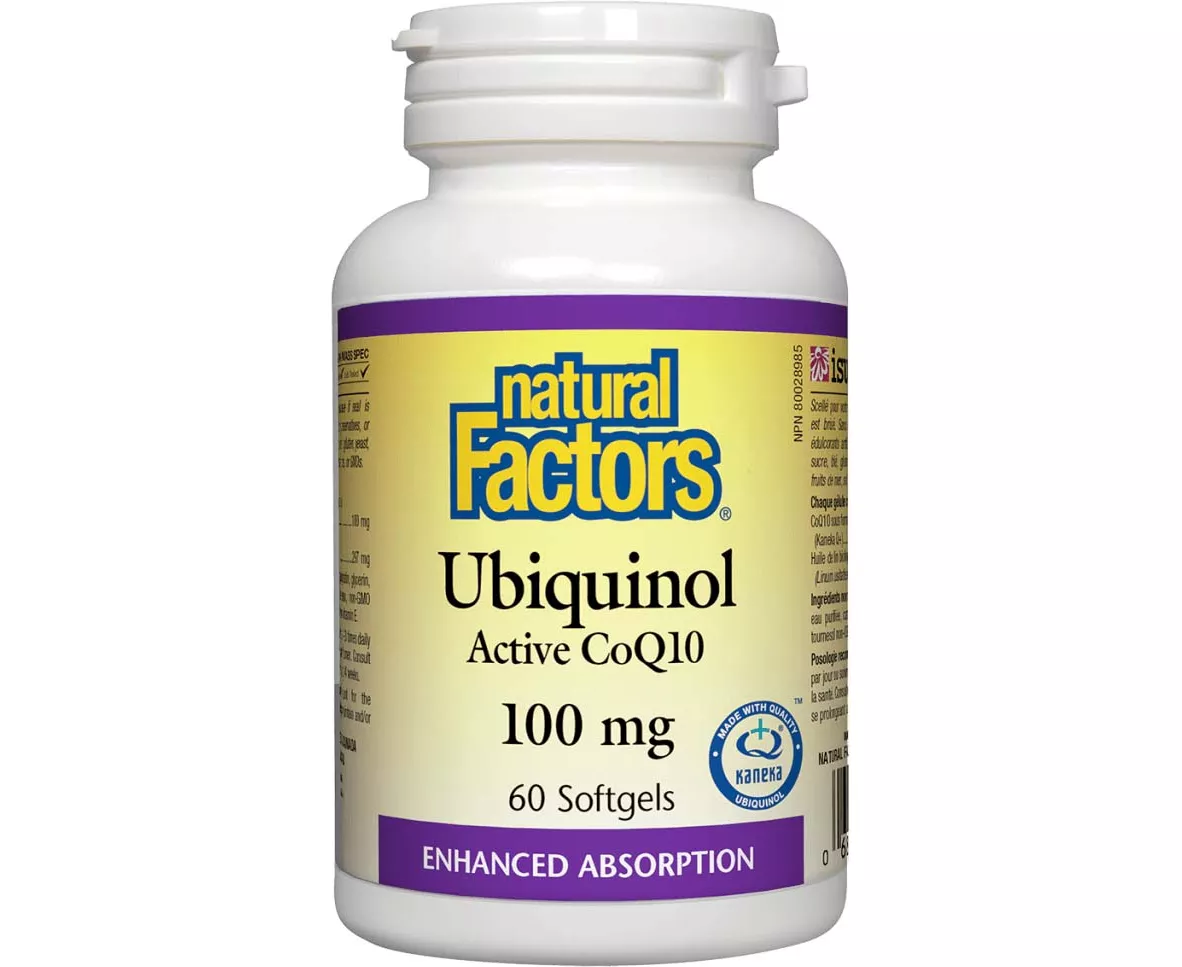 Natural Factors Ubiquinol Active CoQ10 is a co-enzyme for maintaining health against aging and diseases of the elderly and maintaining cardiovascular health