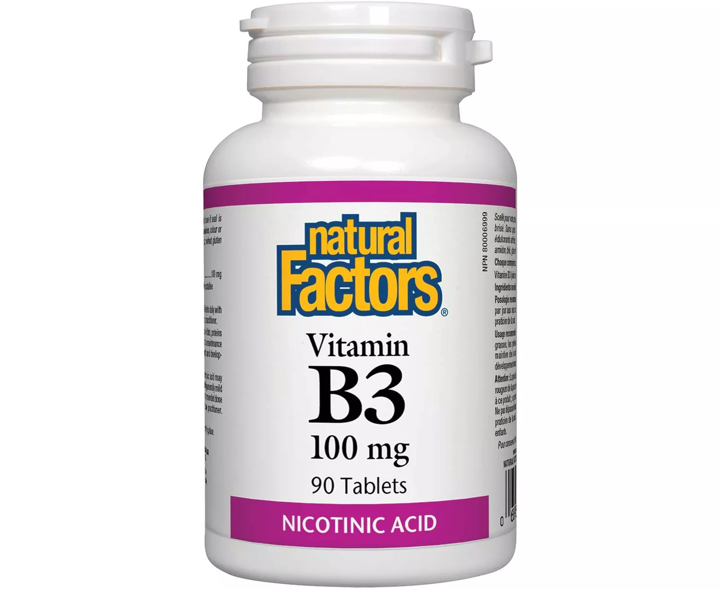Natural Factors Vitamin B3 is a dietary supplement that converts food into energy to be metabolized into protein to increase production, improve energy, maintain sugar, cholesterol and overall health