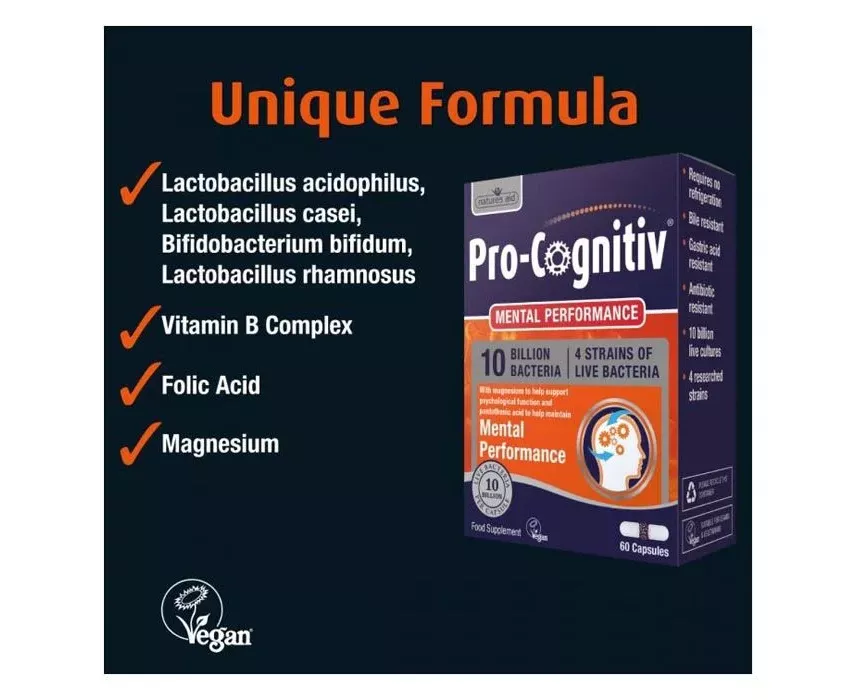 • Pro-Cognitiv from Natures Aid combines specific good bacteria with carefully chosen nutrients, including a full B-vitamin complex and magnesium