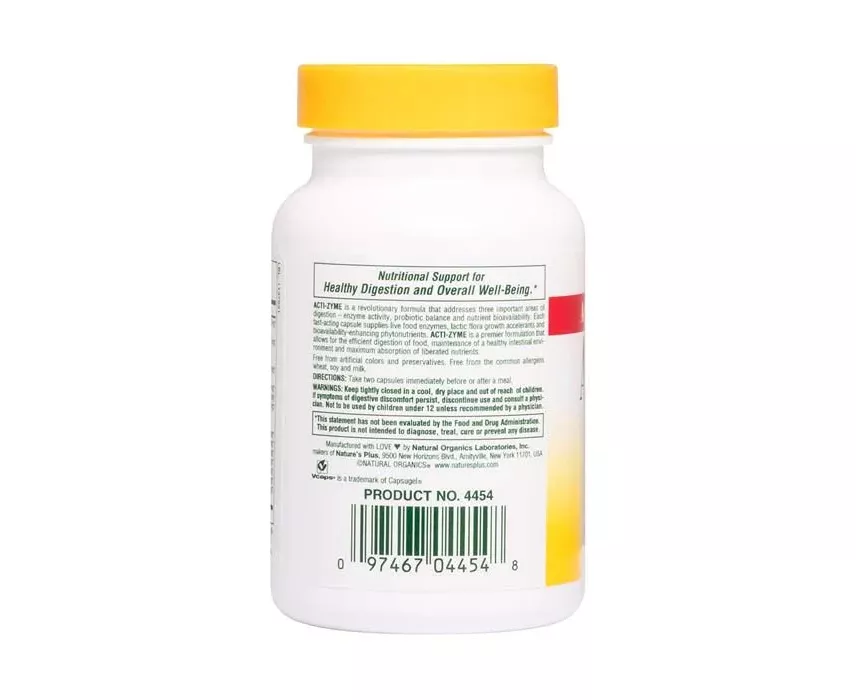 Nature's PLus Acti-Zyme is an herbal formula, ideal for better digestion. Many people today suffer from digestive disorders, such as constipation. This may mean either that the digestive enzymes are not produced enough, or that the intestinal microflora - e.g. probiotics - have been disturbed.