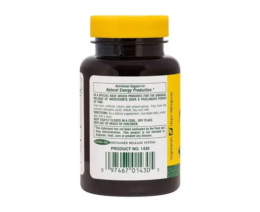 The ingredients are the same as our regular Mega B-100 formula. However, in this product, each mega-potency tablet contains all of the B-Complex vitamins in a special base which provides for the gradual release of ingredients over a prolonged period of time.
