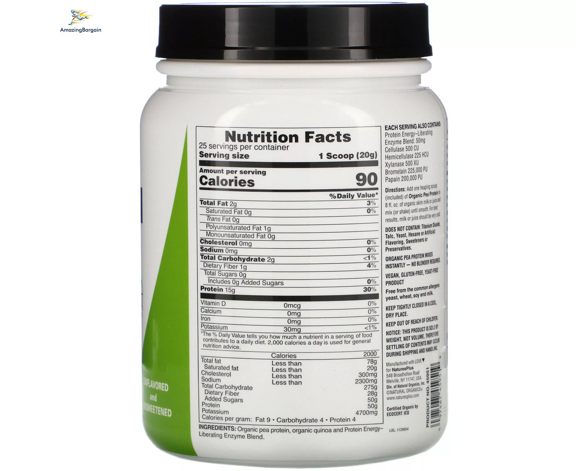 مسحوق بروتين البازلاء العضوي من ناتشرز بلس 1.1رطل