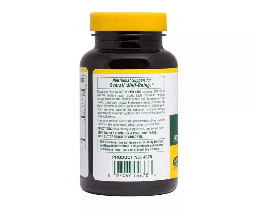 Ultra EPO 1500 is the most potent evening primrose oil supplement ever developed. Each maximum strength 1500 mg soft gelatin capsule, supplying an unprecedented 150 mg of gamma-linolenic acid (GLA), contains the highest grade oil from select, organically grown European evening primrose. NaturesPlus is committed to offering the best supplements available anywhere. Look for the NaturesPlus logo as your guarantee of quality.