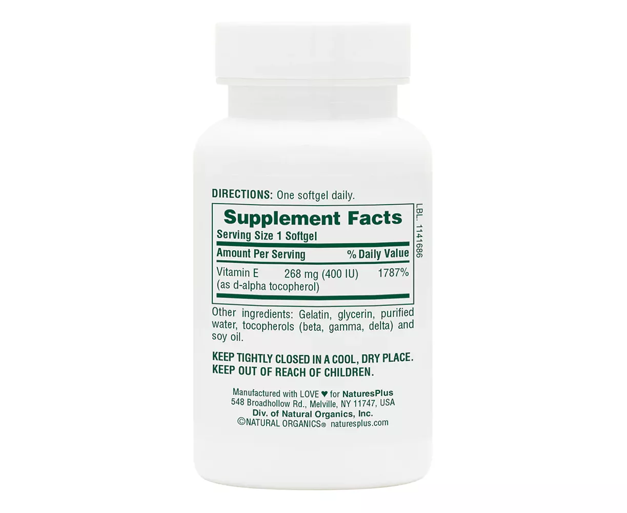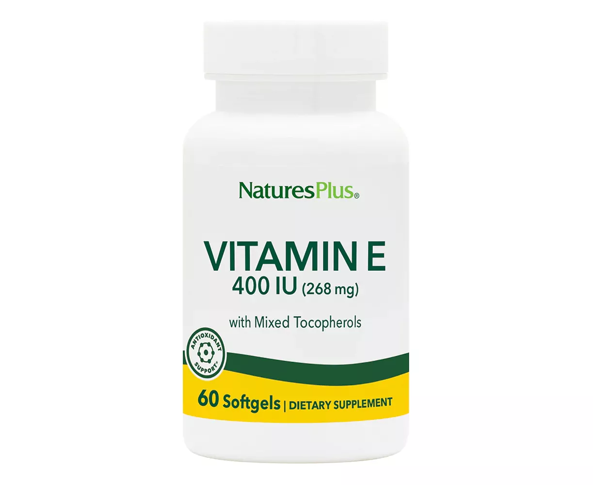 Nature's Plus Vitamin E-400 mixed tocopherols is a dietary supplement containing vitamin E in the natural form of mixed tocopherols.