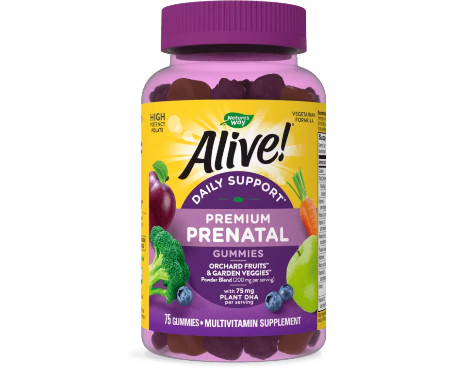 Bringing a new baby into the world means you need special nutritional support not just for baby, but for you, too. Alive! Premium Prenatal Gummy Multivitamin is a premium formula of 15 vitamins and minerals, including the full B-vitamin complex to convert food into cellular energy, plus plant source DHA to support baby’s healthy eye and brain development.* Add these tasty gummies to your wellness routine whether you’re trying to conceive, pregnant, or nursing.