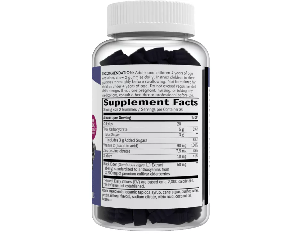 Delicious gummies, bursting with benefits. Sambucus Gummies with black elderberry extract combine zinc and 100% of the recommended Daily Value of vitamin C to support your immune system all year long.* These yummy gummies are a favorite for use during back to school season and in the winter months.