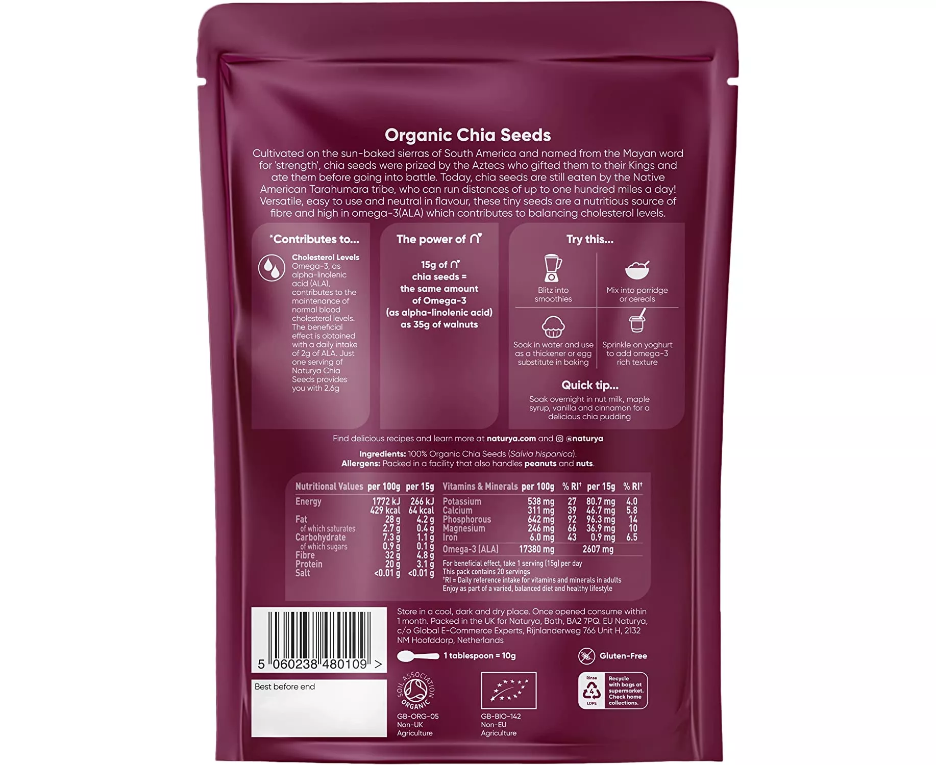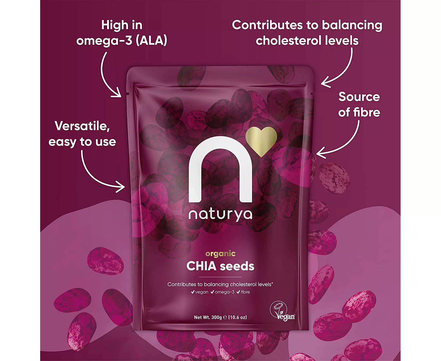 Naturya Organic Chia Seeds Nutrient-Rich Super Foods - Omega 3 - Calcium - Iron - Chia Seeds Are Also High In Magnesium And Fiber - Protein And Potassium - Weight 300 g