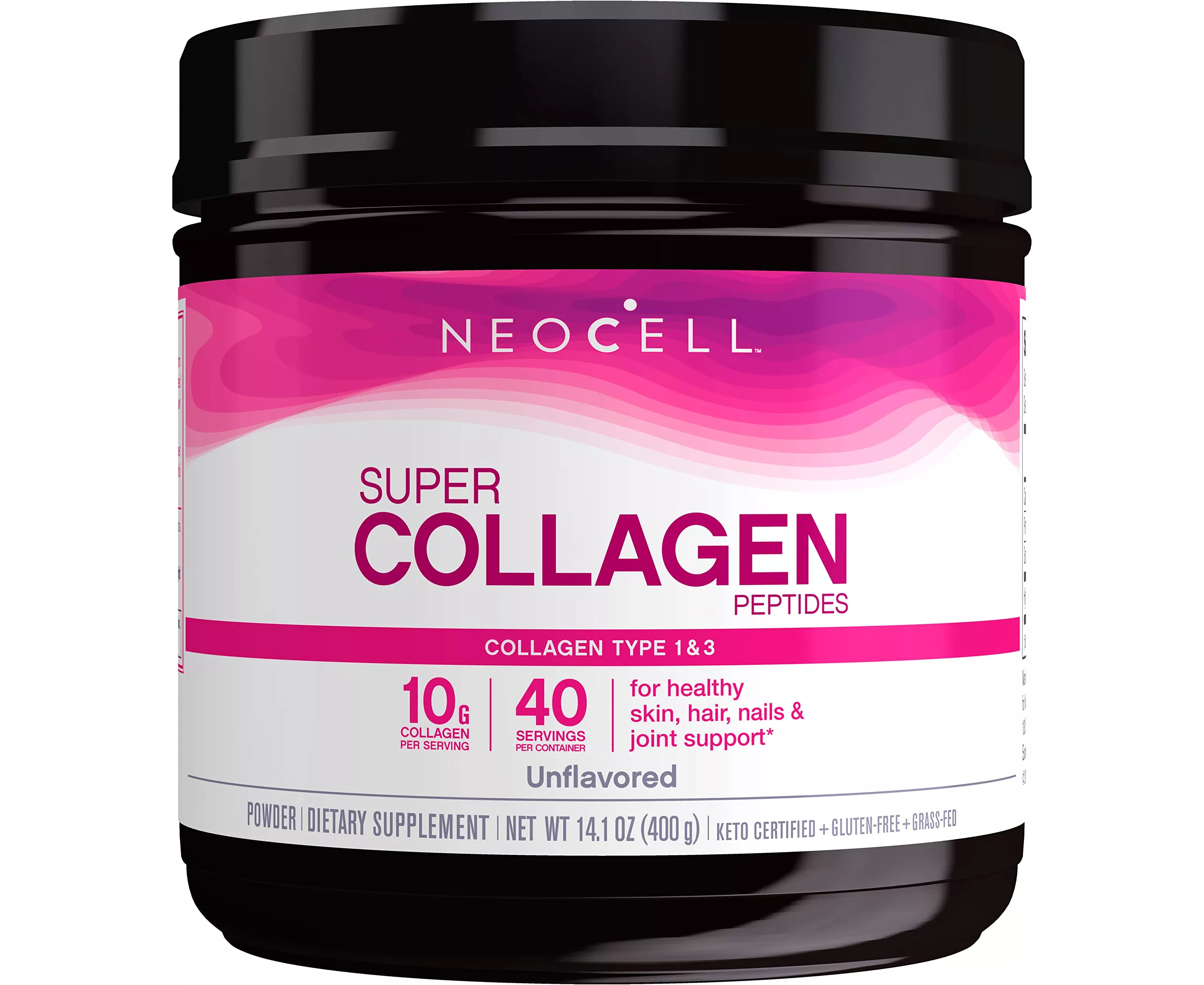 Neocell Super Collagen Peptides Powder (Type 1&3) 10g collagen peptides 14.1Oz (400g) Unflavored. Keto certified + Gluten free + GrassFed.