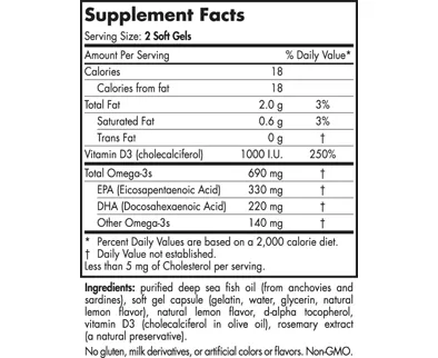 Every body needs omega-3s-and also vitamin D3-to stay healthy. Our non-concentrated Omega-3D liquid and soft gels give you a convenient way to get healthy amounts of both of these essential nutrients on a daily basis. Omega-D3 adds 1000 IU vitamin D3 (cholecalciferol), the form of vitamin D your body makes naturally from sunlight, to this formula. So you get all the health benefits of omega-3 EPA+DHA plus all the bone-building and immune-strengthening support of vitamin D, in one great-tasting serving.