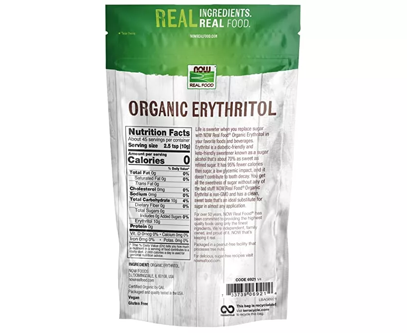 Life is sweeter when you replace sugar with NOW Real Food® Erythritol in your favorite foods and beverages. Erythritol is a diabetic-friendly and keto-friendly sweetener known as a sugar alcohol that's about 70% as sweet as sugar. It has 95% fewer calories than sugar, a low glycemic impact, and it doesn't contribute to tooth decay. You get all the sweetness of sugar without any of the bad stuff! NOW Real Food Erythritol is non-GMO and has a clean, sweet taste that's an ideal substitute for sugar in almost any application.