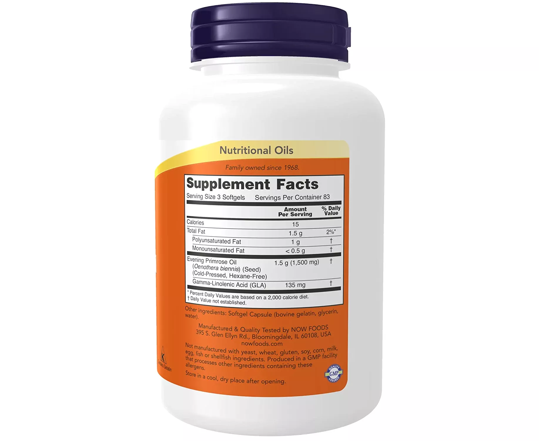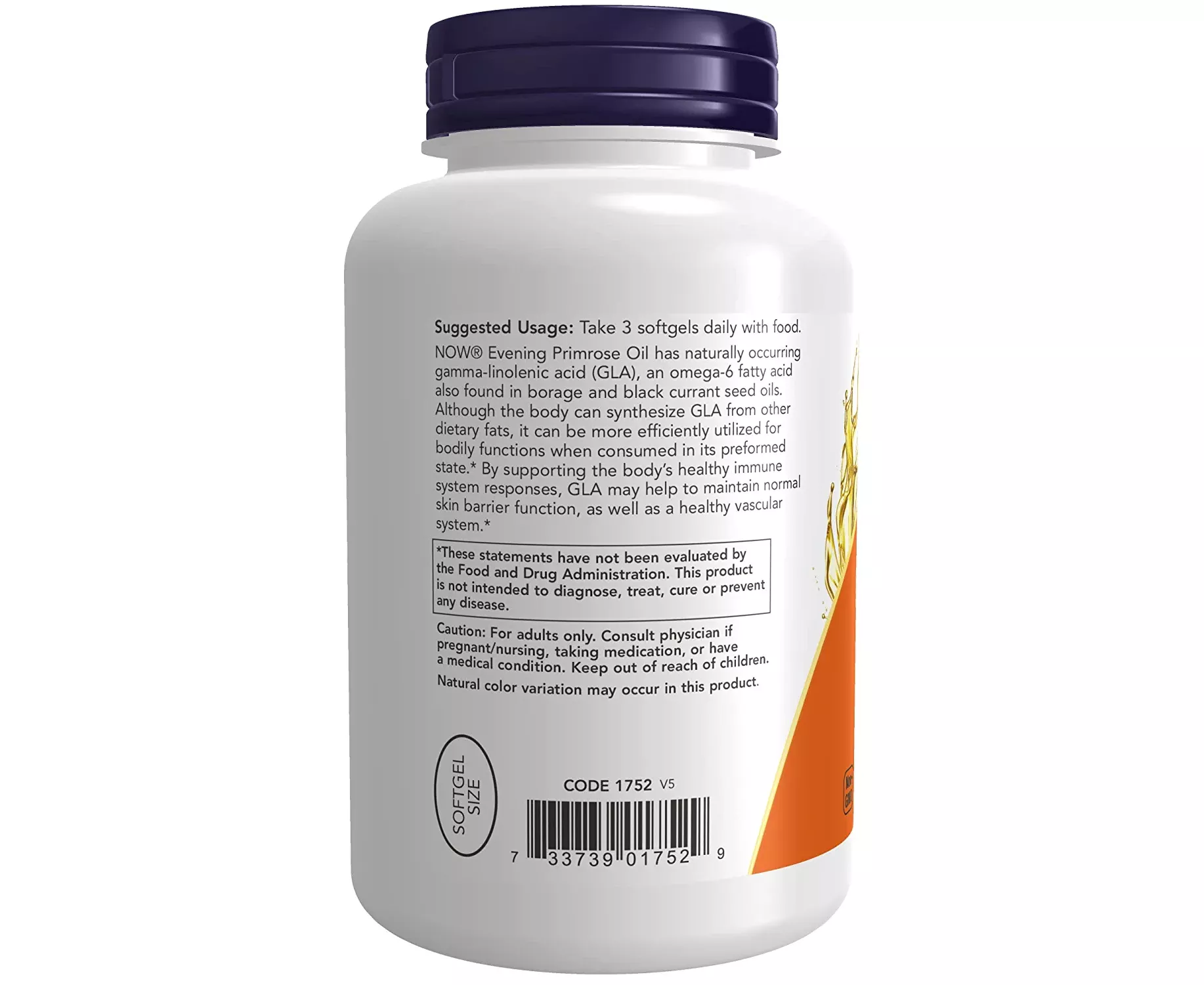NOW® Evening Primrose Oil has naturally occurring gamma-linolenic acid (GLA), an omega-6 fatty acid also found in borage and black currant seed oils. Although the body can synthesize GLA from other dietary fats, it can be more efficiently utilized for bodily functions when consumed in its preformed state.* By supporting the body’s healthy immune system responses, GLA may help to maintain normal skin barrier function, as well as a healthy vascular system.