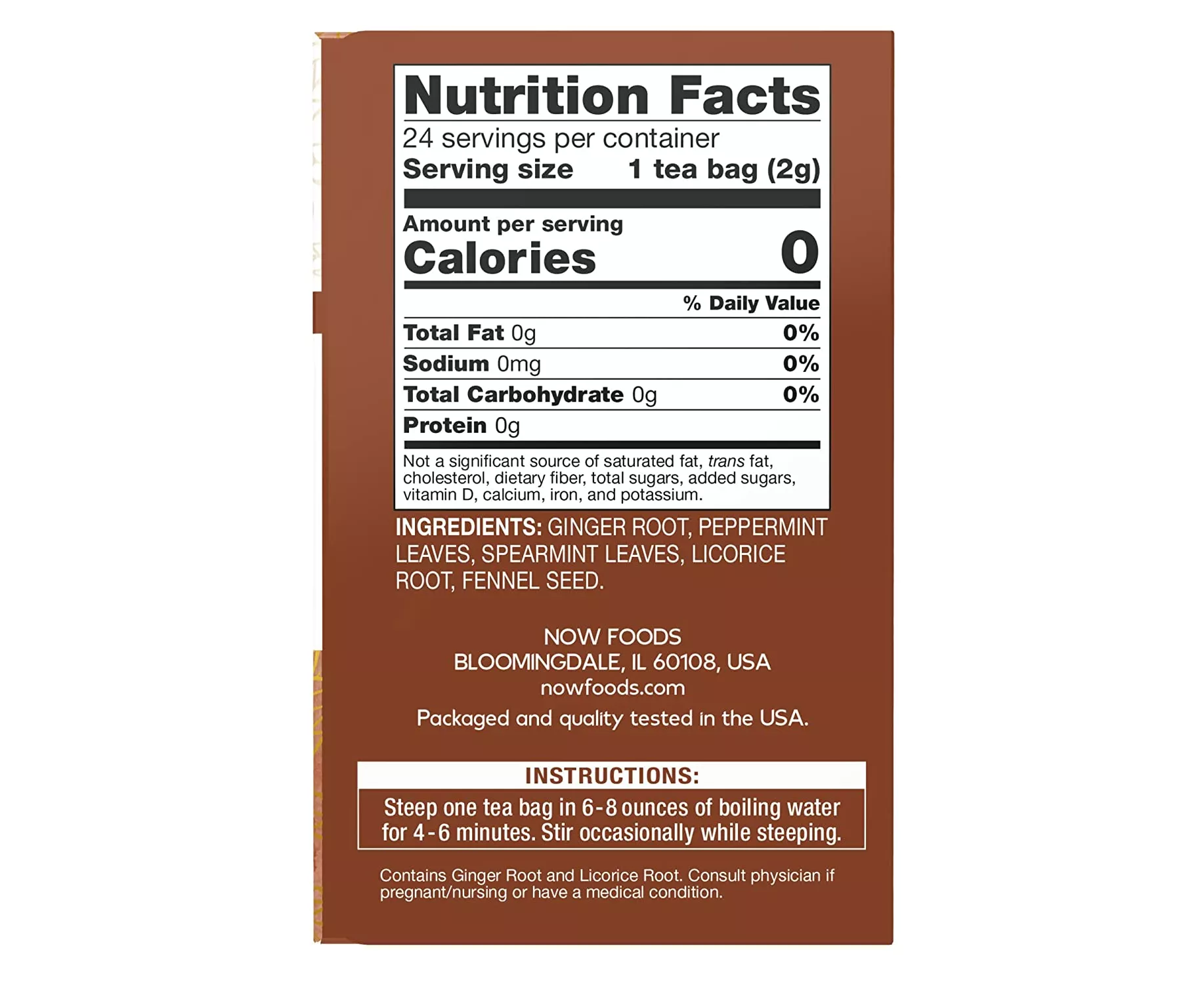 Now Foods Ginger Mint Comfort Tea 24 Tea Bags