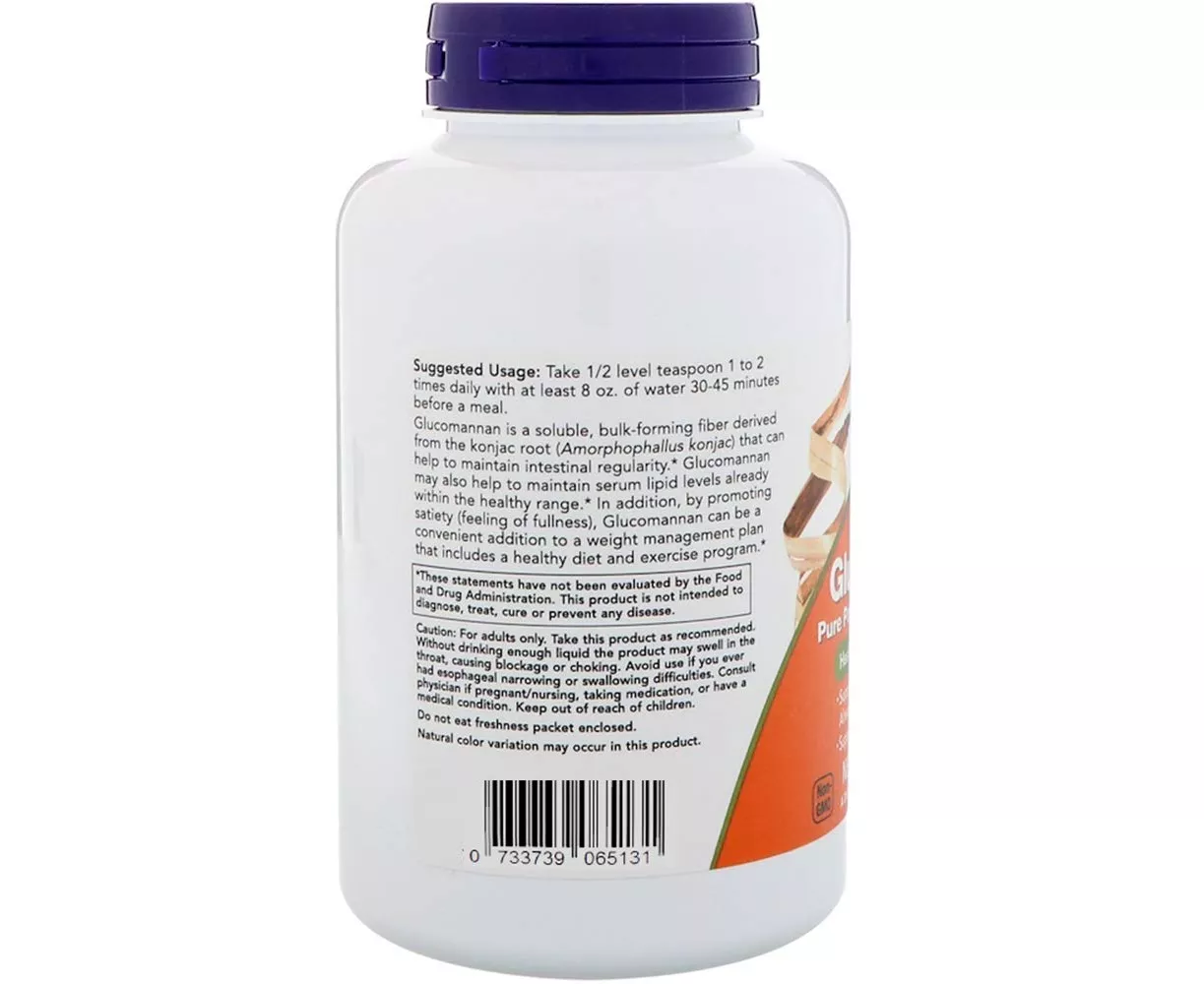 Now Foods Glucomannan from Konjac Root 227 g Powder. Glucomannan is a soluble, bulk-forming fiber derived from the konjac root (Amorphophallus konjac) that can help to maintain intestinal regularity. Glucomannan may also help to maintain serum lipid levels already within the healthy range. In addition, by promoting satiety (feeling of fullness), Glucomannan can be a convenient addition to a weight management plan that includes a healthy diet and exercise program. Supplement is dairy free, soy free, nut free, egg free, Non - GMO, vegan.