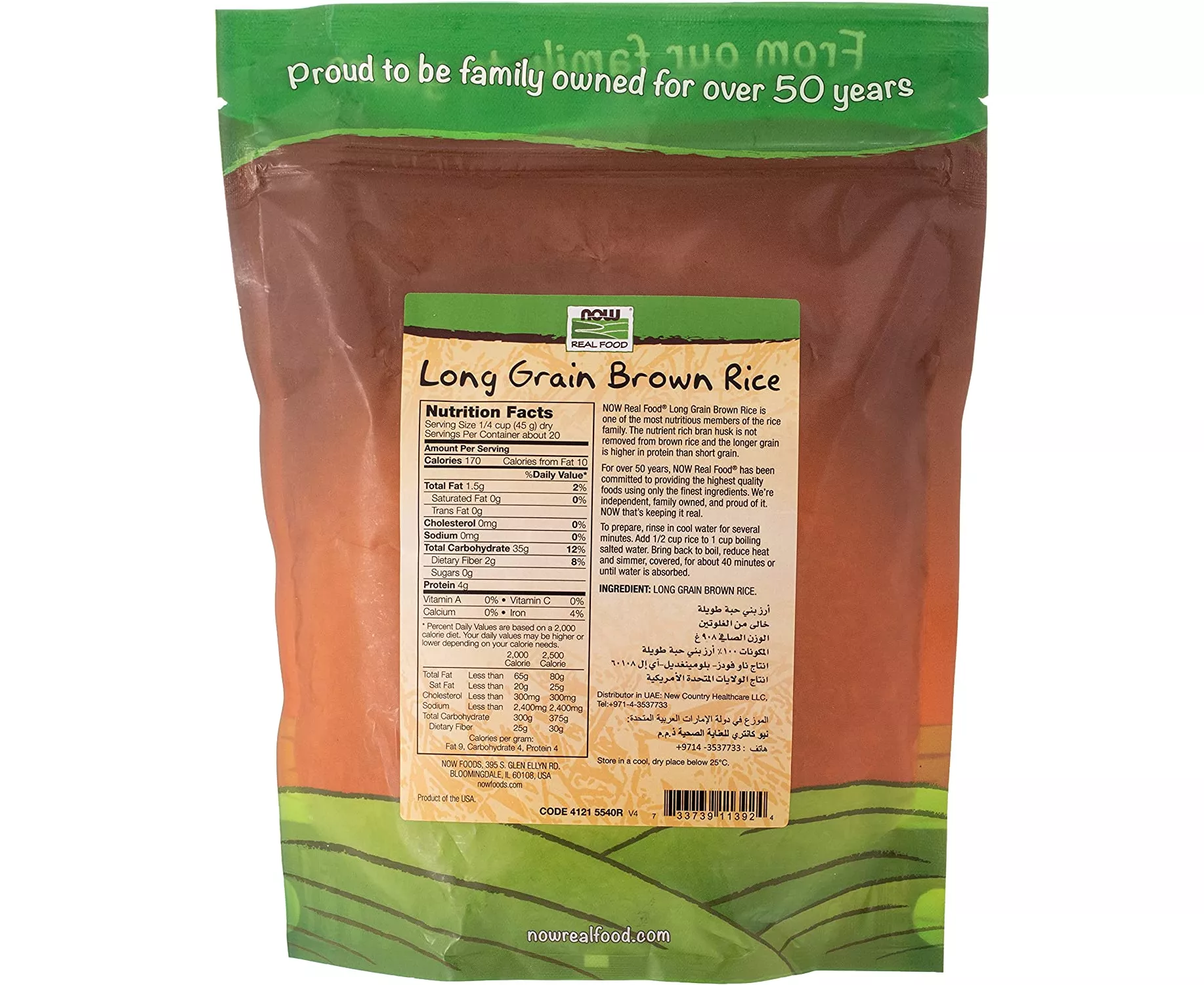 ng Grain Brown Rice - 100% Long Grain Brown Rice. NOW Real Food Long Grain Brown Rice is one of the most nutritious members of the rice family. The nutrient rich bran husk is not removed from the brown rice and the longer grain is higher in protein than short grain. Because you are what you eat, Now Real Food has been committed to providing delicious, healthy, natural and organic foods since 1968. We're independent family-owned, and proud of it. Keep it natural, keep it real.