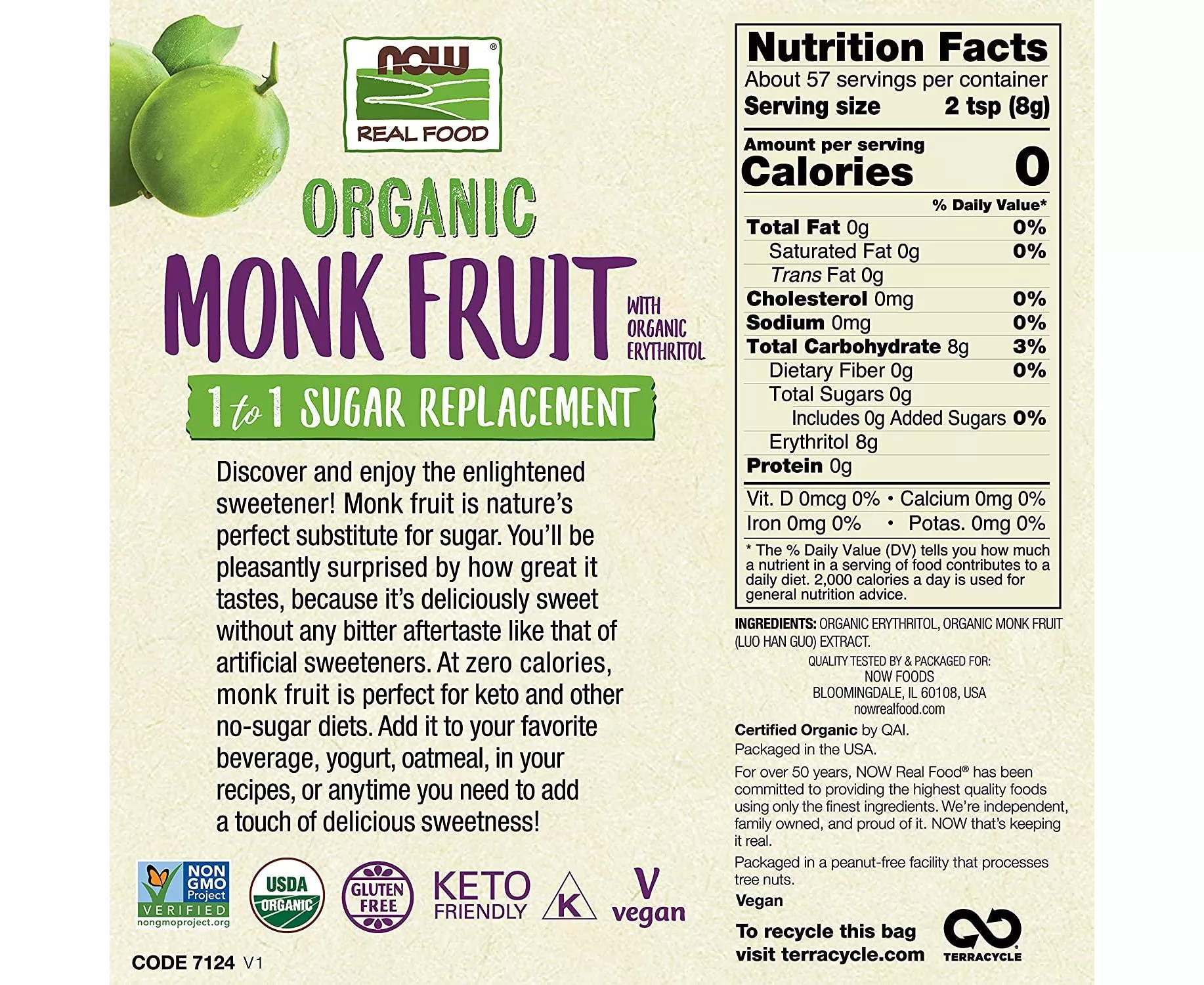 Discover and enjoy the enlightened sweetener! Monk fruit is nature's perfect substitute for sugar. You'll be pleasantly surprised by how great it tastes, because it's deliciously sweet without any bitter aftertaste like that of high intensity sweeteners. At zero calories, monk fruit is perfect for keto and other no-sugar diets. Add it to your favorite beverage, yogurt, oatmeal, in your recipes, or anytime you need to add a touch of sweetness.