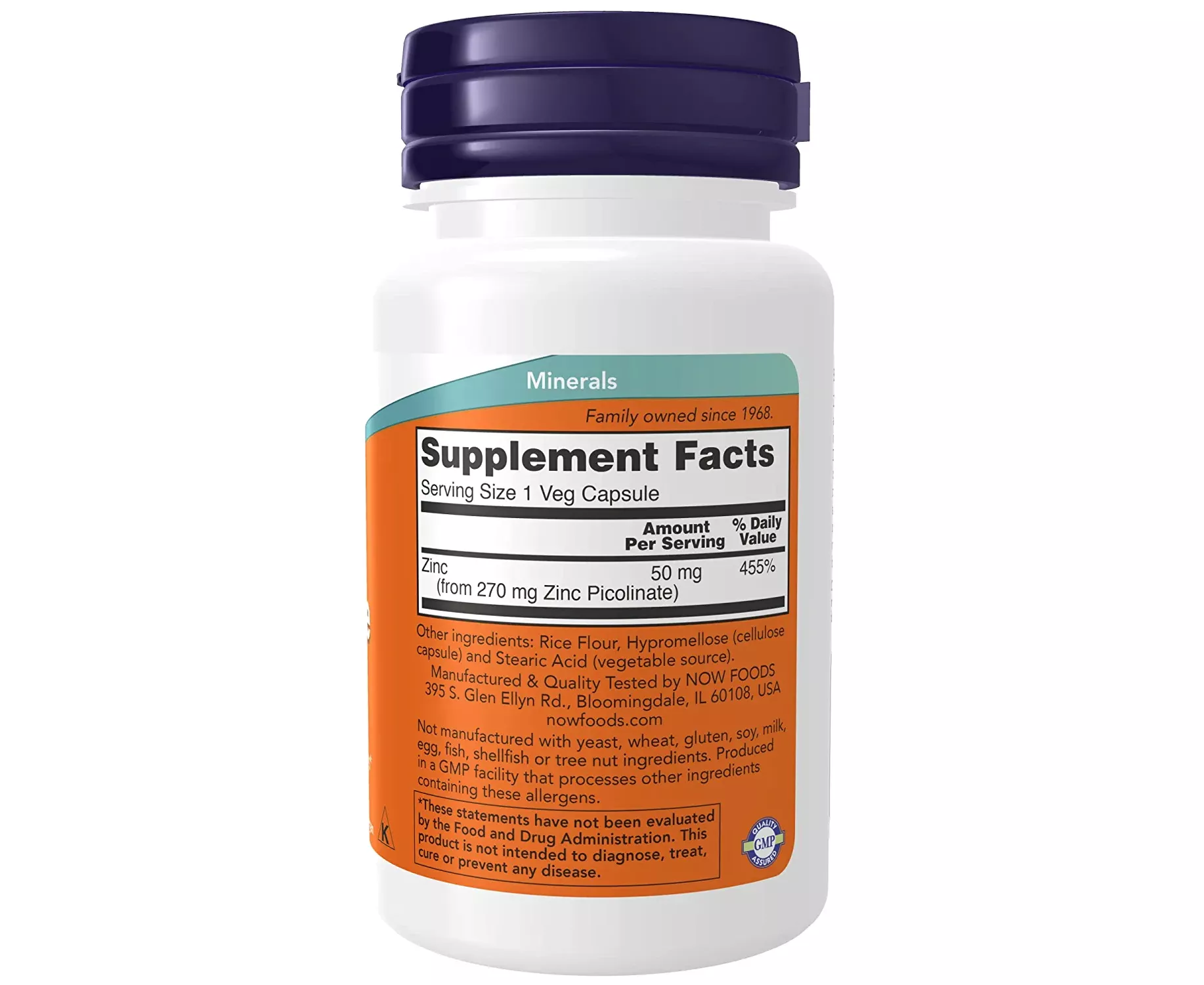 Now Foods Zinc Picolinate 50mg 60 Veg Capsules