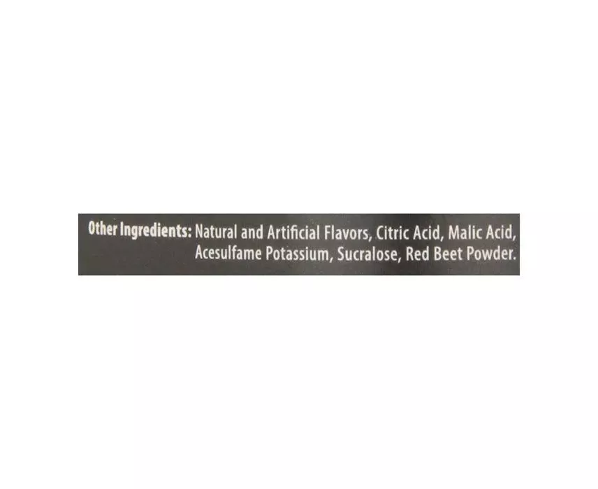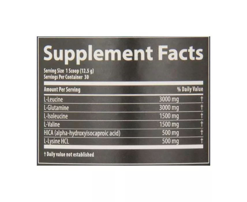 L-Leucine, L-Glutamine, L-Isoleucine, L-Valine, HICA (alpha-hydroxyisocaproic acid), L-Lysine HCL, Natural and Artificial Flavors, Citric Acid, Malic Acid, Acesulfame Potassium, Sucralose, Red Beet Powder.