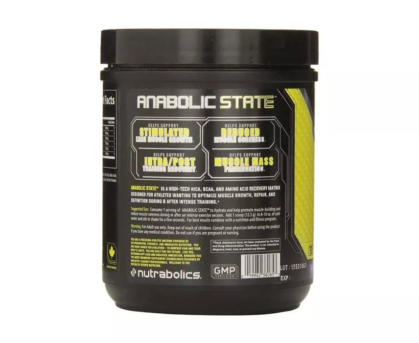 Add one scoop of ANABOLIC STATE (12.5 g) to 8 oz €“ 10 oz / 250 mL €“ 300 mL of cold water and shake for a few seconds. Consume 1 €“ 3 servings daily to hydrate, help promote muscle building, and reduce muscle soreness during or after an intense exercise session. For best results, combine with a diet and exercise program.