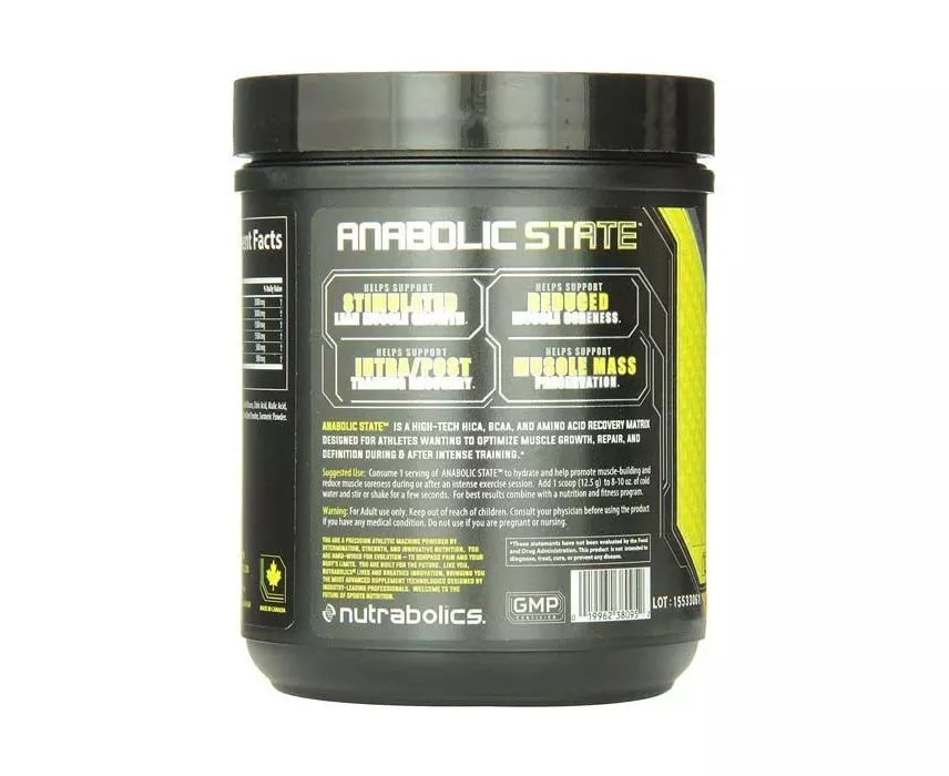 Add one scoop of ANABOLIC STATE (12.5 g) to 8 oz €“ 10 oz / 250 mL €“ 300 mL of cold water and shake for a few seconds. Consume 1 €“ 3 servings daily to hydrate, help promote muscle building, and reduce muscle soreness during or after an intense exercise session. For best results, combine with a diet and exercise program.