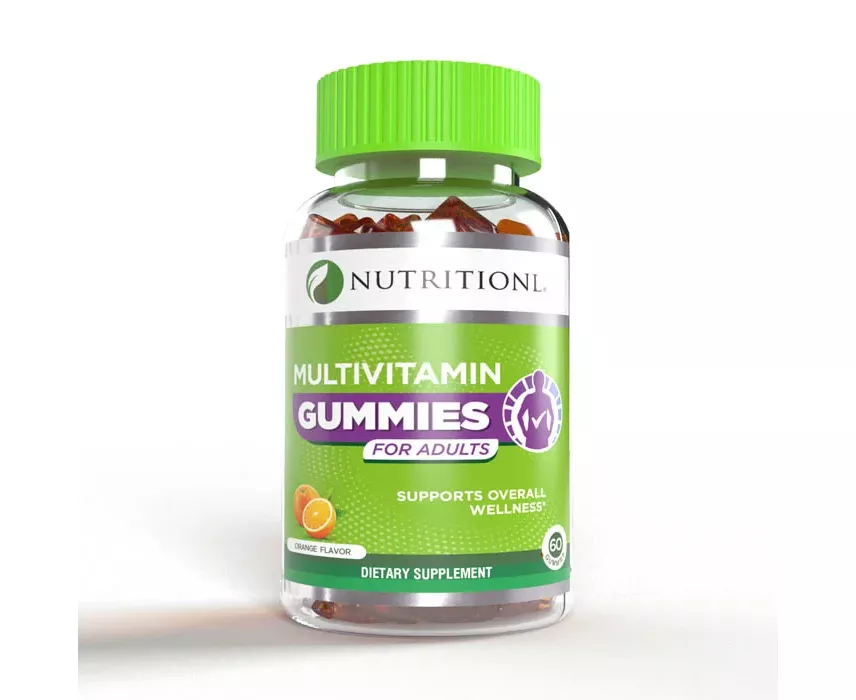 NUTRITIONL Multivitamin Gummies are specially formulated for adults with essential vitamins to target overall wellness. It contains Vitamin A to support eye & skin health, B-Vitamins to boost energy levels and healthy cell function. Vitamin C  for normal immune system function, Vitamin D for stronger bones & teeth, Vitamin E as a potent antioxidant, and Glutamine for healthy gut function and immune system.