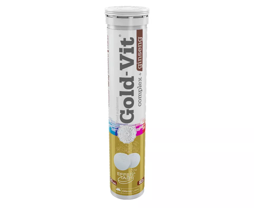 Gold-Vit complex + Ginseng is a food supplement in the form of effervescent tablets containing a complex composition of vitamins, including vitamin B2, B6, B12, pantothenic acid with Korean Panax ginseng extract.
