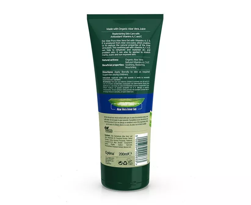 Our Aloe Pura Aloe Vera Gel with Vitamins A, C & E is produced from Aloe vera juice, which enables us to capture the natural properties of the Aloe vera plant. This soothing gel with vitamins A, C & E can help to rehydrate and replenish dry and problem skin. It can also be applied to stretch marks, scars and sun exposed skin.