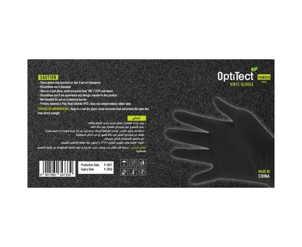قفازات سوداء فينيل خالية من المسحوق من أوبتي تكت - 100 قطعة XL
