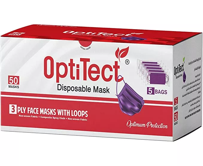 قناع بنفسجي يستخدم لمرة واحدة من أوبتي تكت - علبة من 50 قطع (5 أكياس)