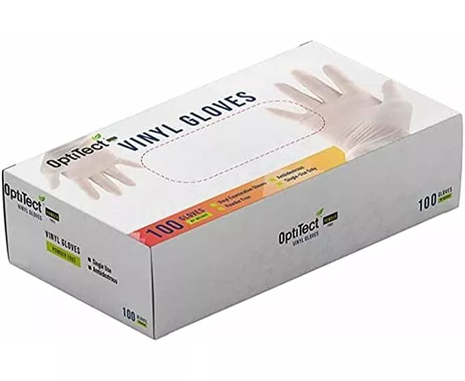 OptiTect Disposable Vinyl Gloves Powder Free Non Sterile Latex Free Rubber,100 Count Medium