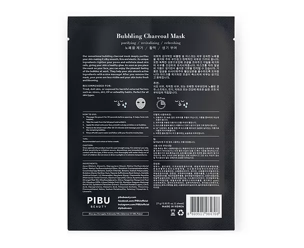 Our sensational bubbling charcoal mask deeply purifies your skin making it silky smooth, firm and elastic. Its unique ingredients tighten your pores and exfoliate dead skin cells, giving your skin a healthy glow. As soon as you place the mask on your face, you can enjoy the pleasant feeling of the bubbles at work. They help your skin absorb active ingredients with a nice massage! After you remove the mask, your pores are less visible and your skin looks fresh and blooming.